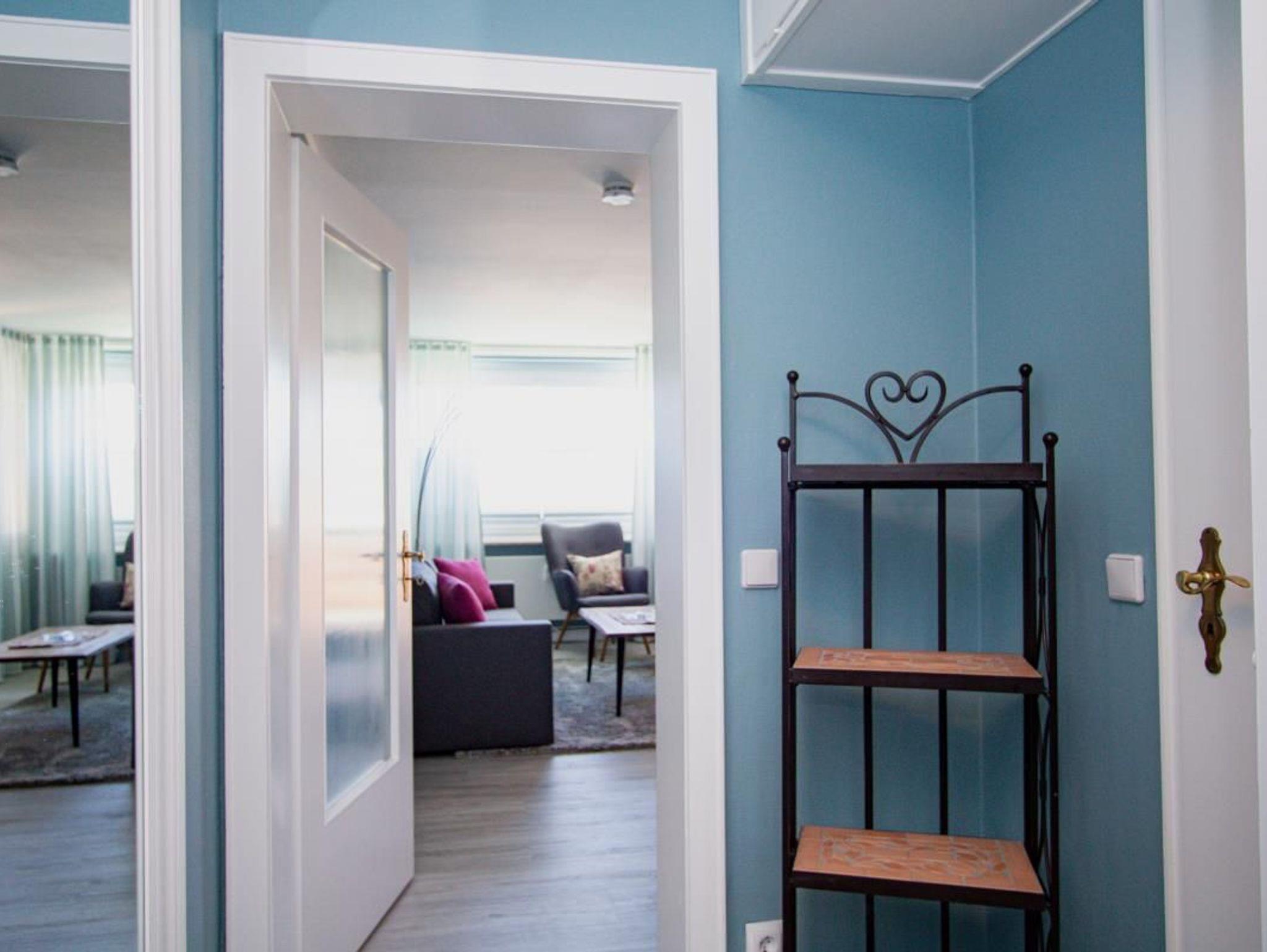 Ausstattung: Das Wohnzimmer hat eine große Fensterfront mit der integrierten Loggia zum Westen. Die Wohnung wurde 2023 neu renoviert. Vom Wohnzimmer gelangt man in die kleine Innen liegende Küche. Beim Bad handelt es sich um ein Duschbad. Das Schlafzimmer hat ein Doppelbett.