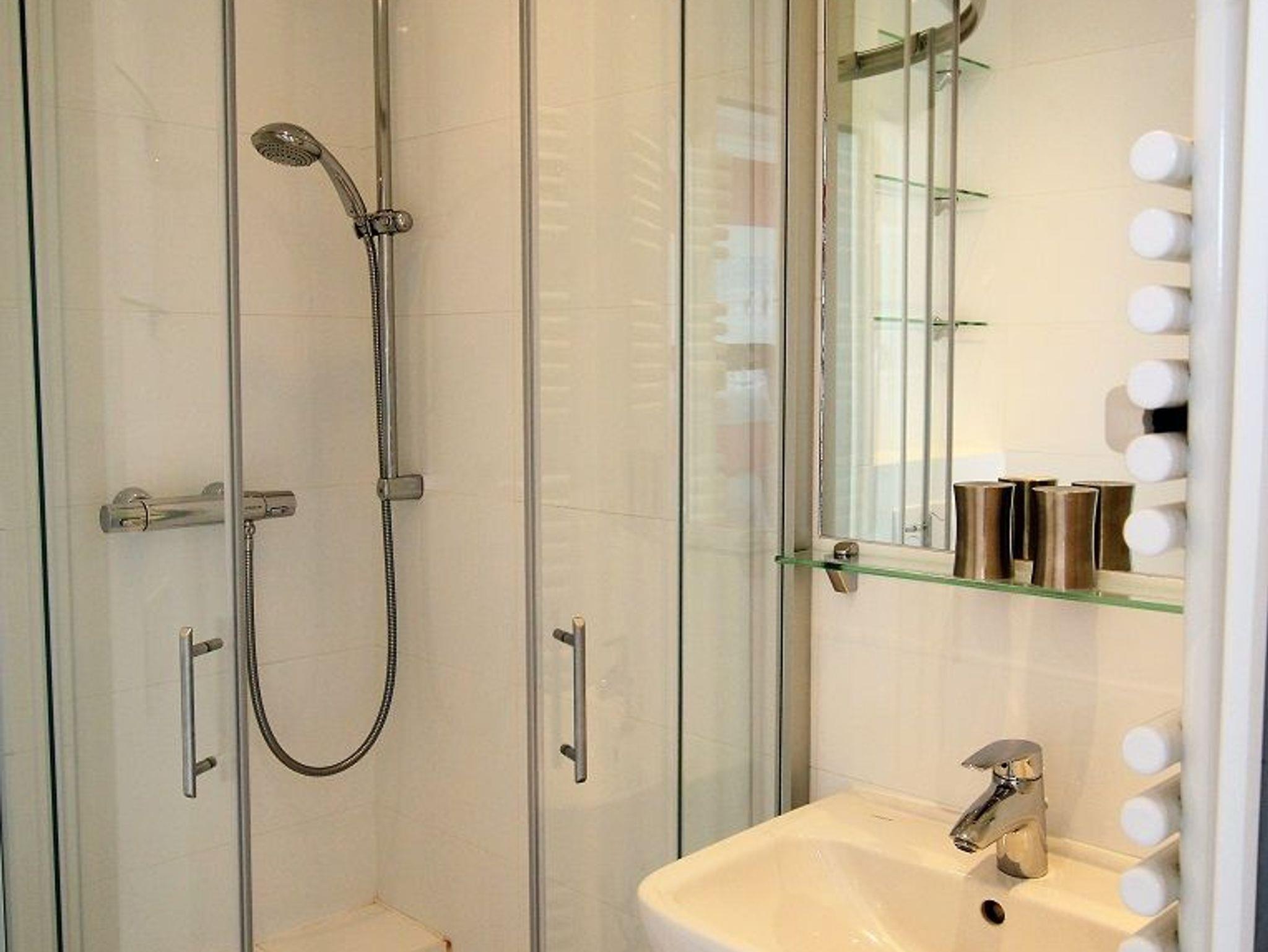 Ausstattung: Im Wohnzimmer des Appartements stehen eine Couch und, vor dem Fenster, der Essplatz. In einer Schrankwand ist das Doppelschrankbett untergebracht. Die Küchenzeile mit Mikrowelle und Geschirrspüler ist zum Wohnzimmer hin offen. Das Bad hat eine Dusche. In der Wohnung gibt es W-Lan.