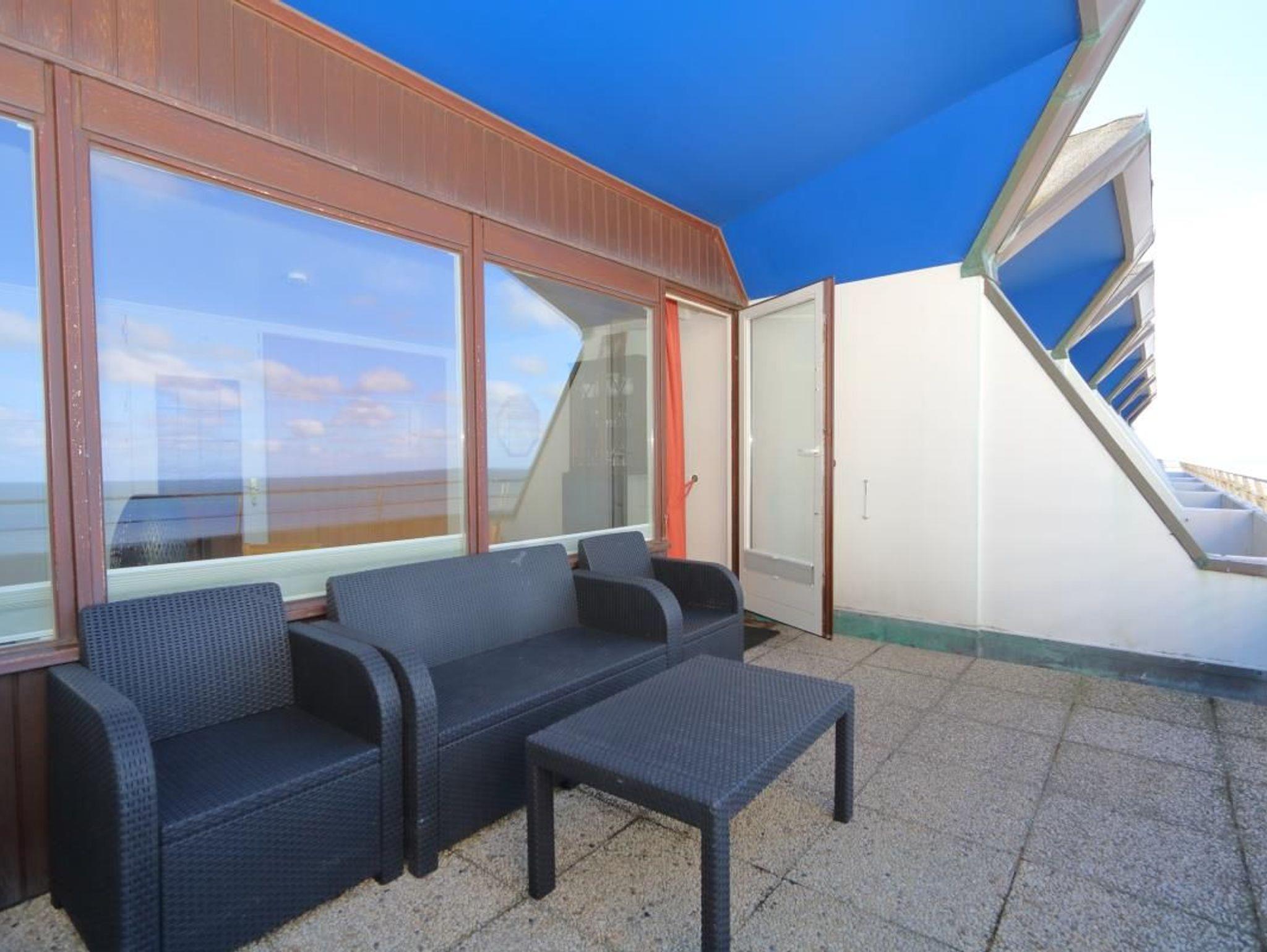 Dieses 1-Zimmer-Appartement befindet sich in der 8. Etage des Appartementhauses Haus am Meer. Diese Etage ist die oberste und damit die Penthouse-Etage, die vom 7. OG über eine Treppe zu erreichen ist. Das Haus steht direkt am Hauptstrand zwischen den beiden Fußgängerzonen.