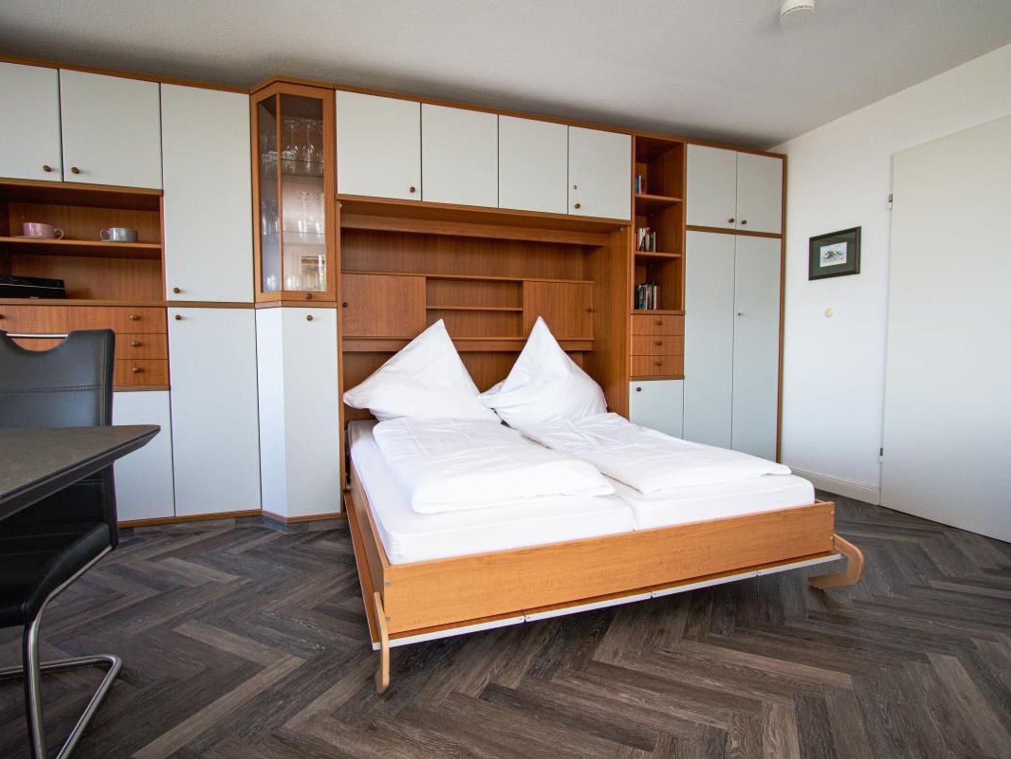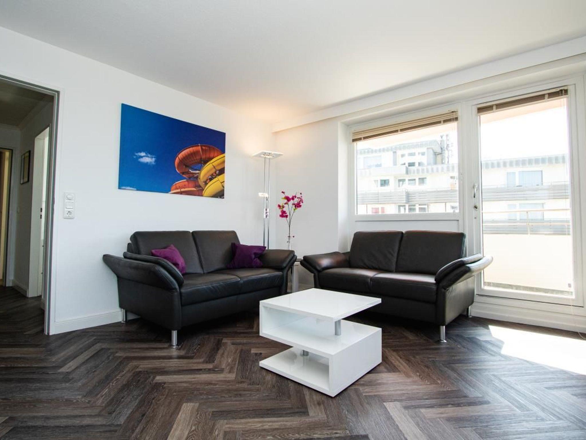 Das Appartement hat im Wohnzimmer in einer Schrankwand zwei einzeln ausklappbare Schrankbetten (Liegefläche jeweils 75x200cm). Eine Couchgarnitur und ein Essplatz runden die Einrichtung ab. An das Wohnzimmer schließen sich zwei Balkone an. Vom Westbalkon hat man einen freinen Blick auf das Meer. Der Südbalkon gestattet auch einen Blick auf das Meer und einen interessanten Blick auf die Fußgängerzone Friedrichstaße. In der Diele ist die Küchenzeile mit Geschirrspüler und Mikrowelle untergebracht. Das Schlafzimmer hat zwei getrennt stehende Einzelbetten (90x200). Im Duschbad gibt es ein Fenster.
