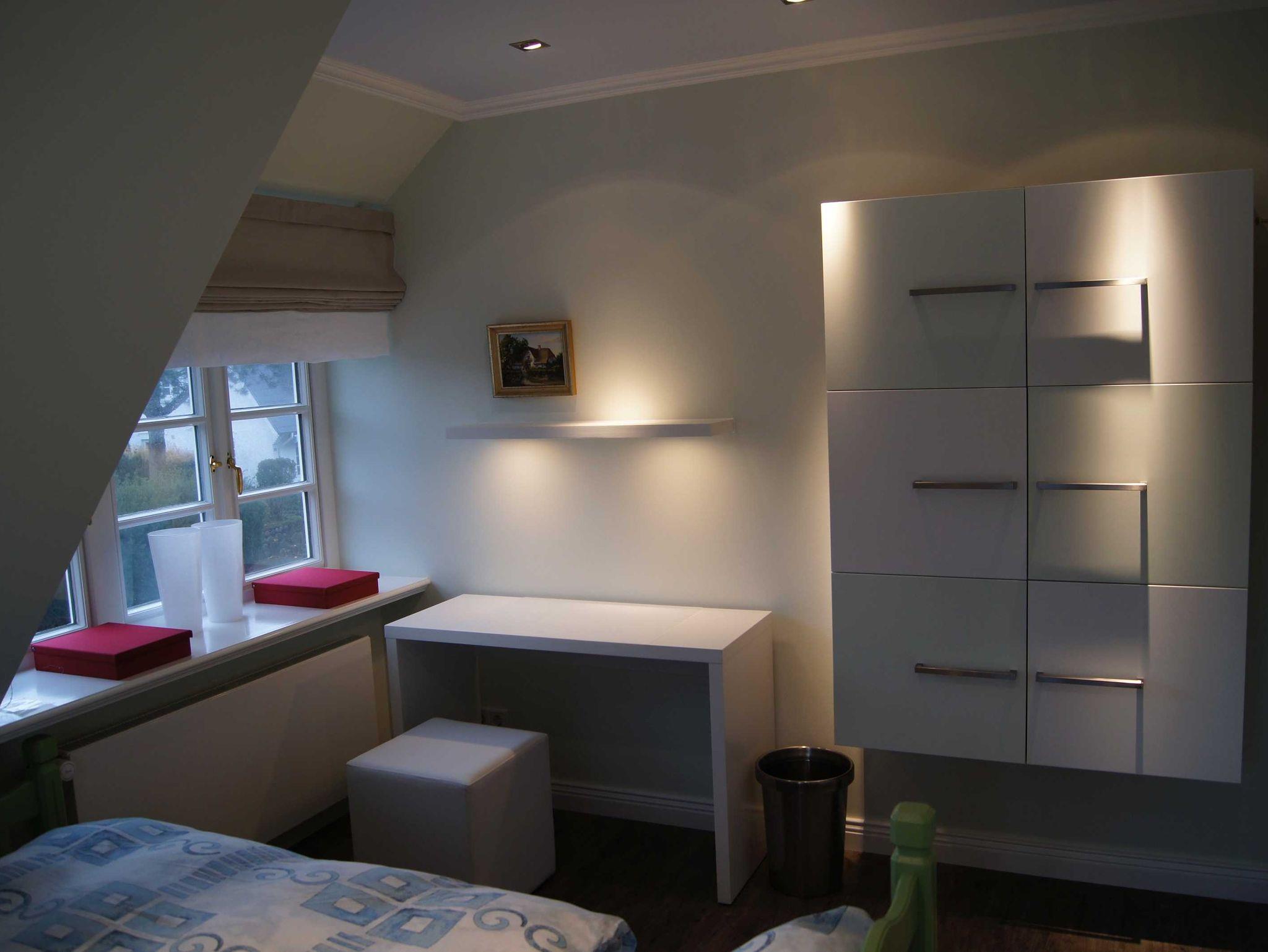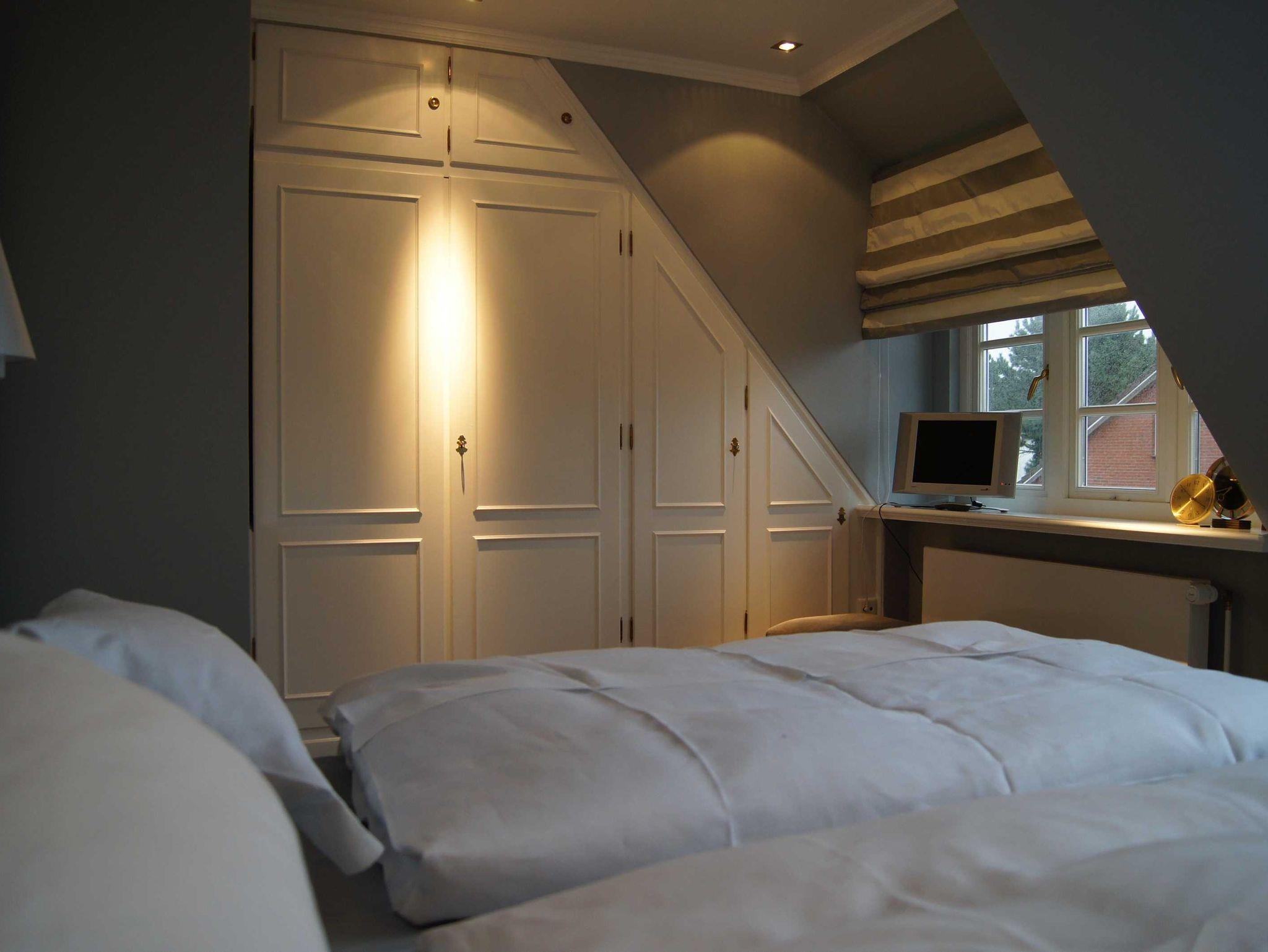 Die Schlafzimmer des Ferienhauses sind im ersten Stock gelegen und sehr hell. Eines ist zusätzlich mit TV versehen. Unter dem Dachgeschoss ergibt sich ein Rückzugsraum. Er ist außerdem mit einem Schreibtisch für ´arbeitswütige´ und einem weiteren Fernseher /DVD ausgestattet. Eine kleine Auswahl an Filmen liegt für Sie bereit.