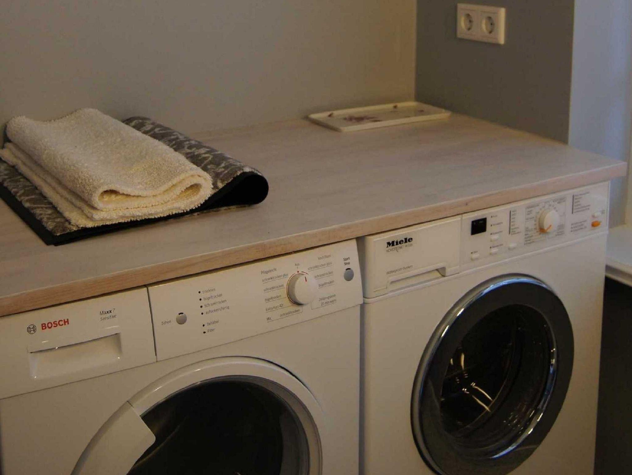 Außerdem ein Duschbad mit Hauswirtschaftsbereich (Waschmaschine/ Trockner/ Bügeln).