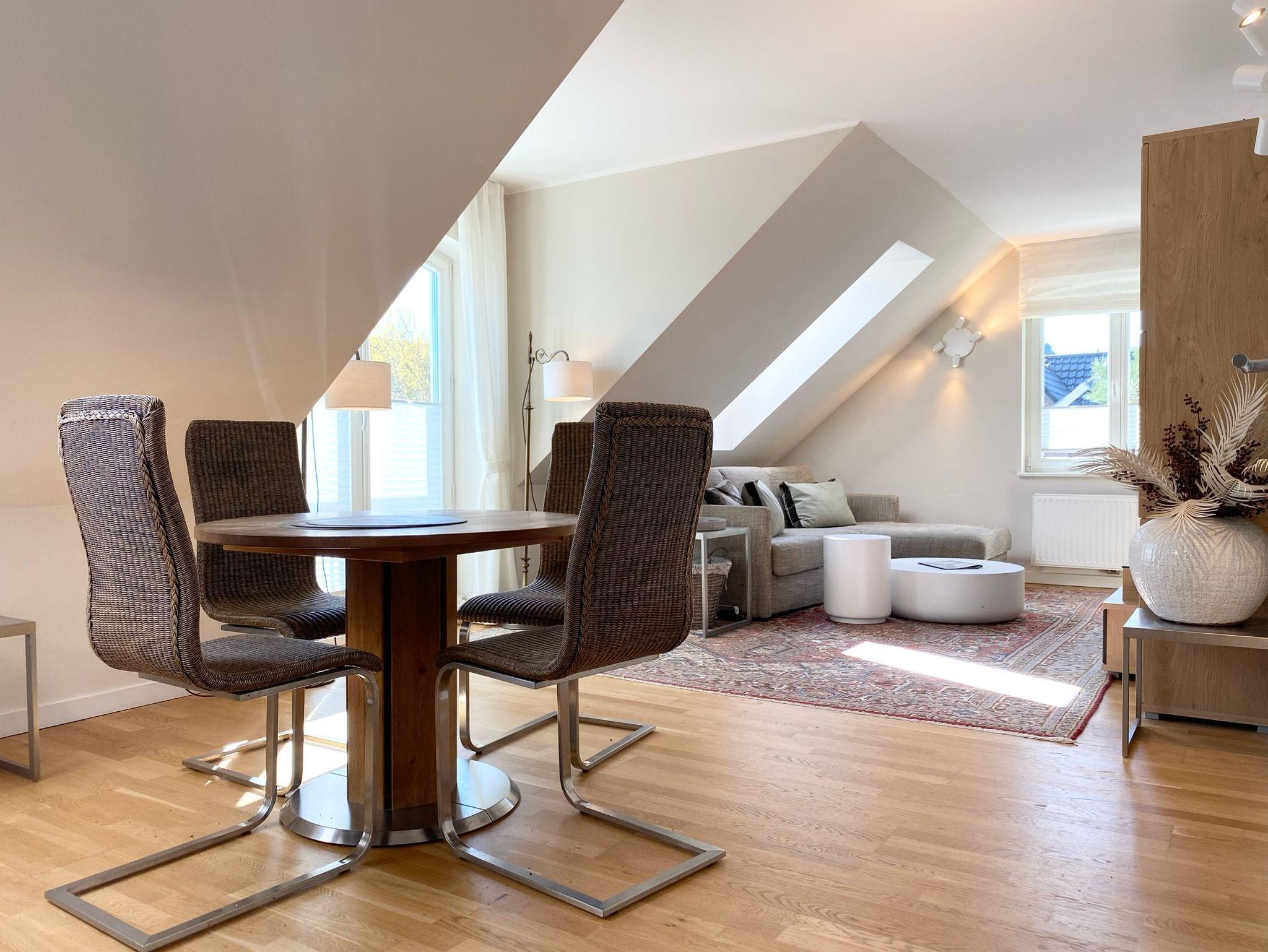 Der helle und geräumige Wohn- und Essbereich ist das Herzstück der Wohnung. Entspannen Sie auf der bequemen Sitzgruppe (mit Schlafsofa für zwei separate Schlafplätze) vor dem Flachbild-TV (3D-fähig). Die gemütliche Essecke mit vier Stühlen lädt zu gemeinsamen Mahlzeiten oder Spieleabenden ein.