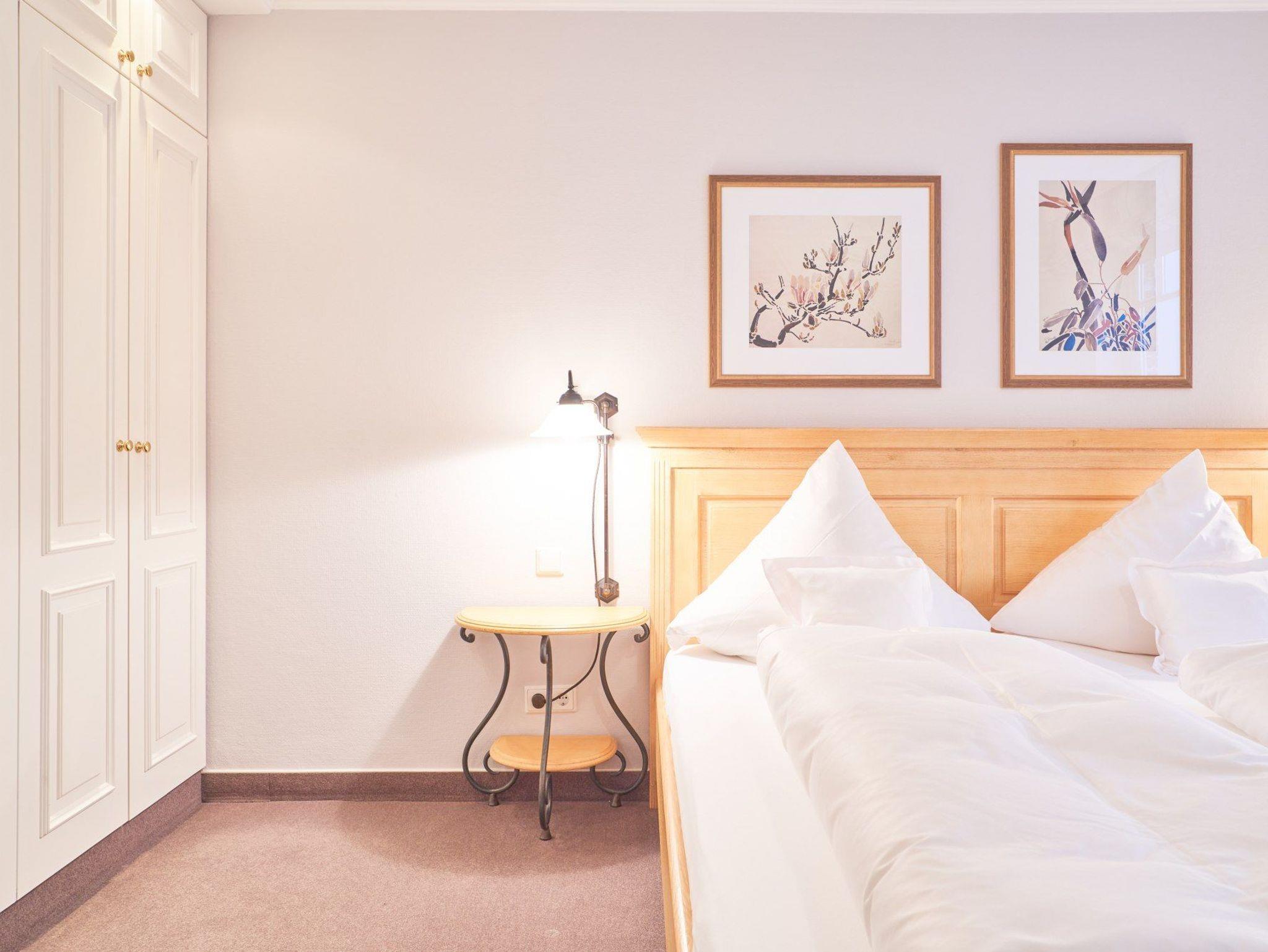 Zwei Doppelbettschlafzimmer, ein Schlafzimmer mit Einzelbett, und ein begehbarer Kleiderschrank.