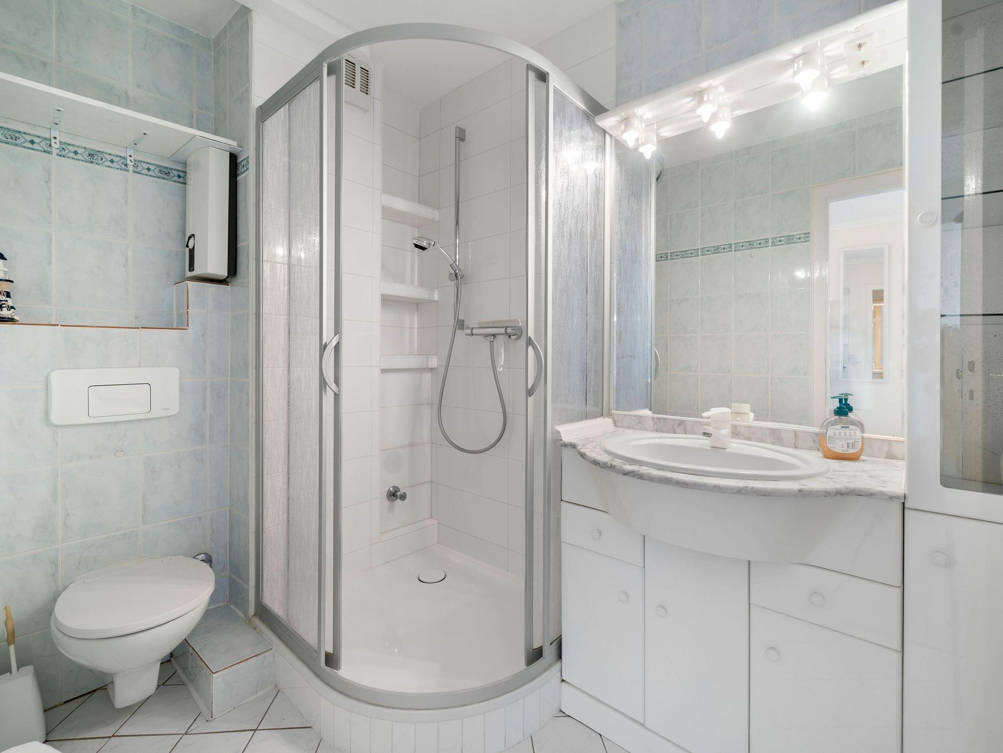 Das Badezimmer ist mit Dusche/WC ausgestattet.