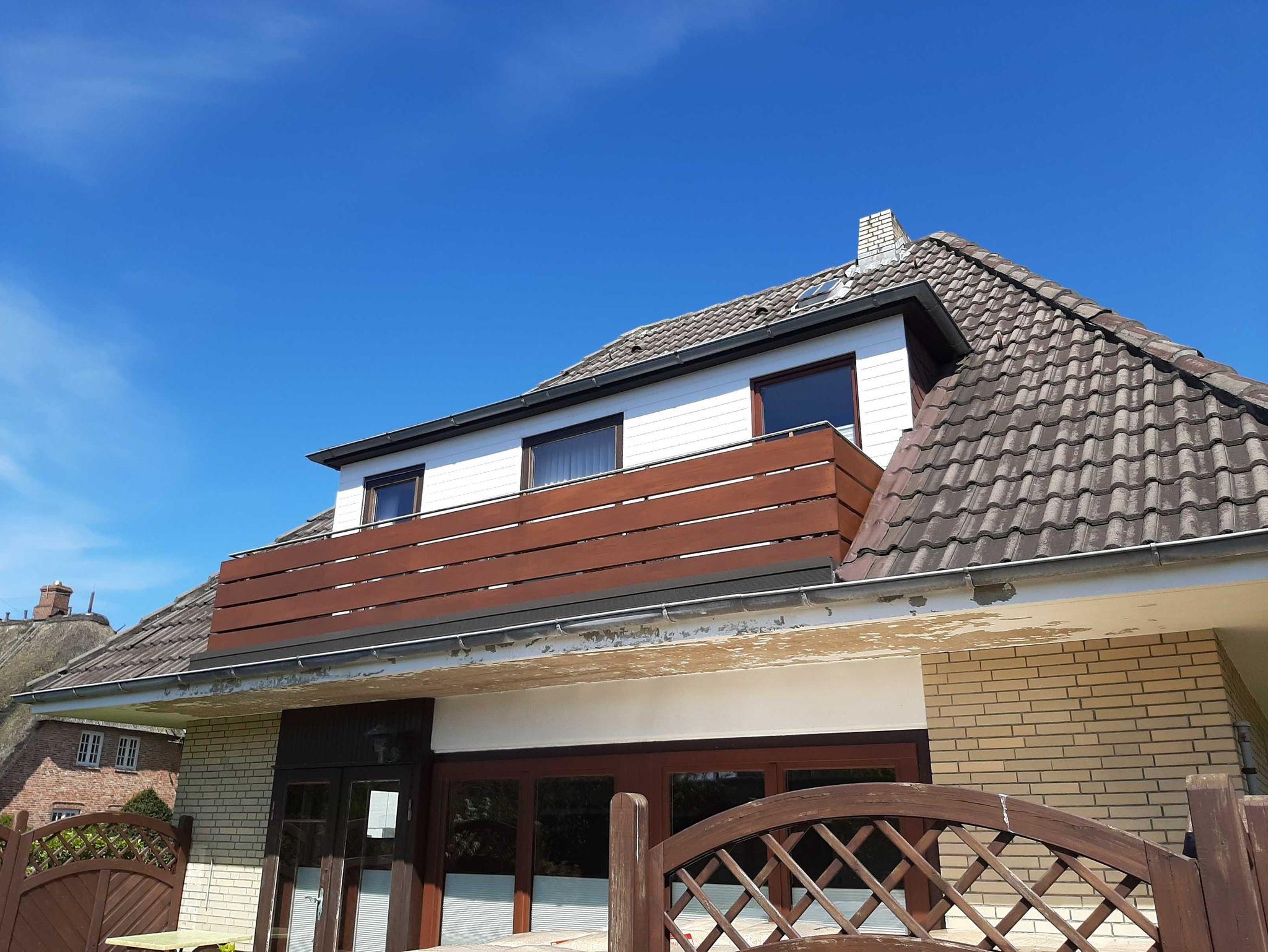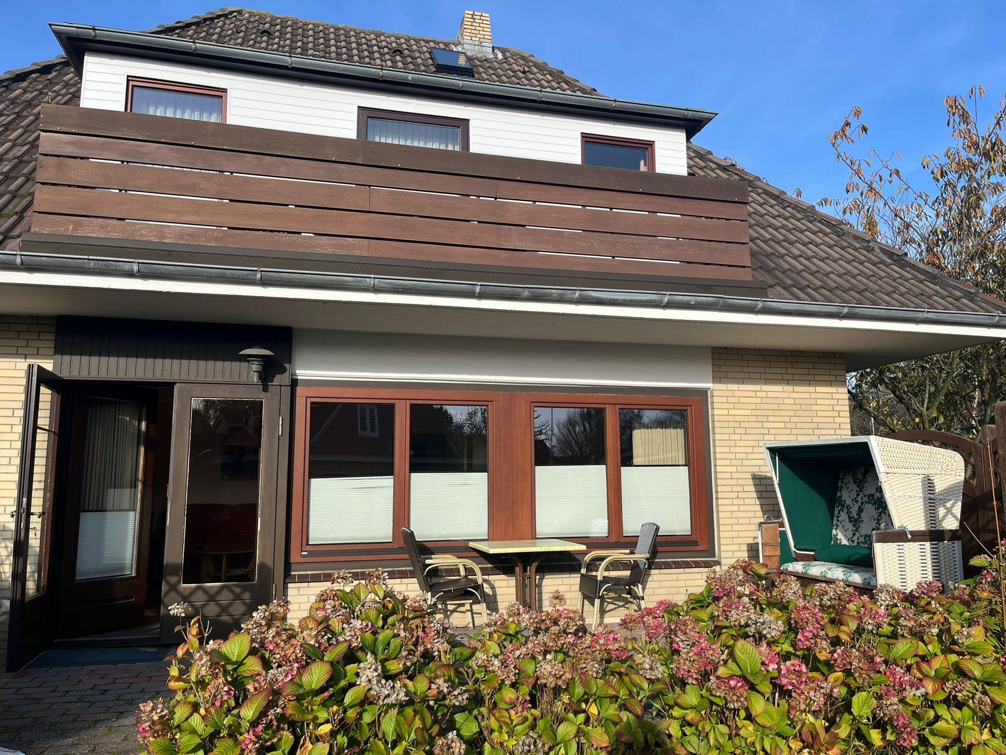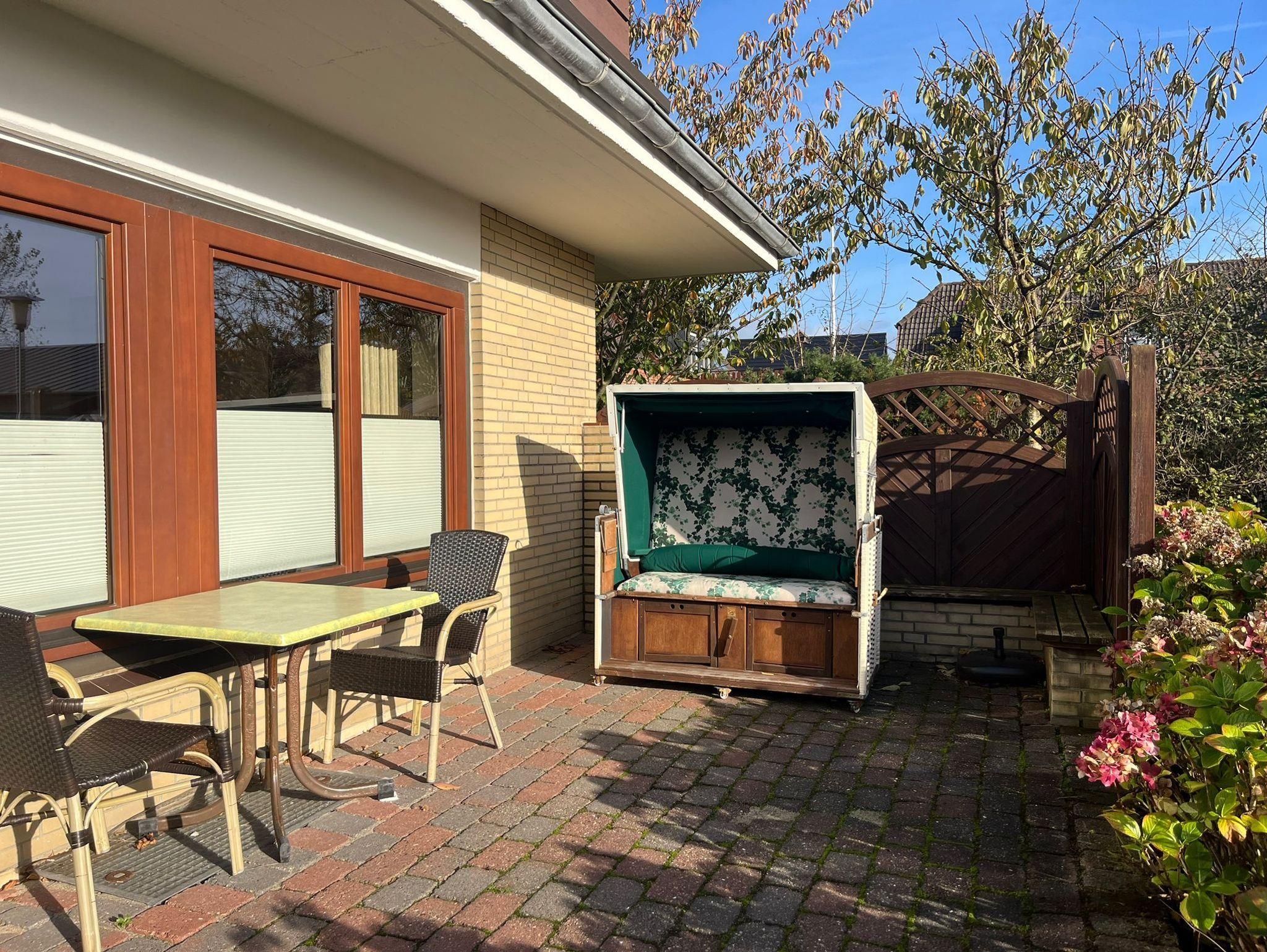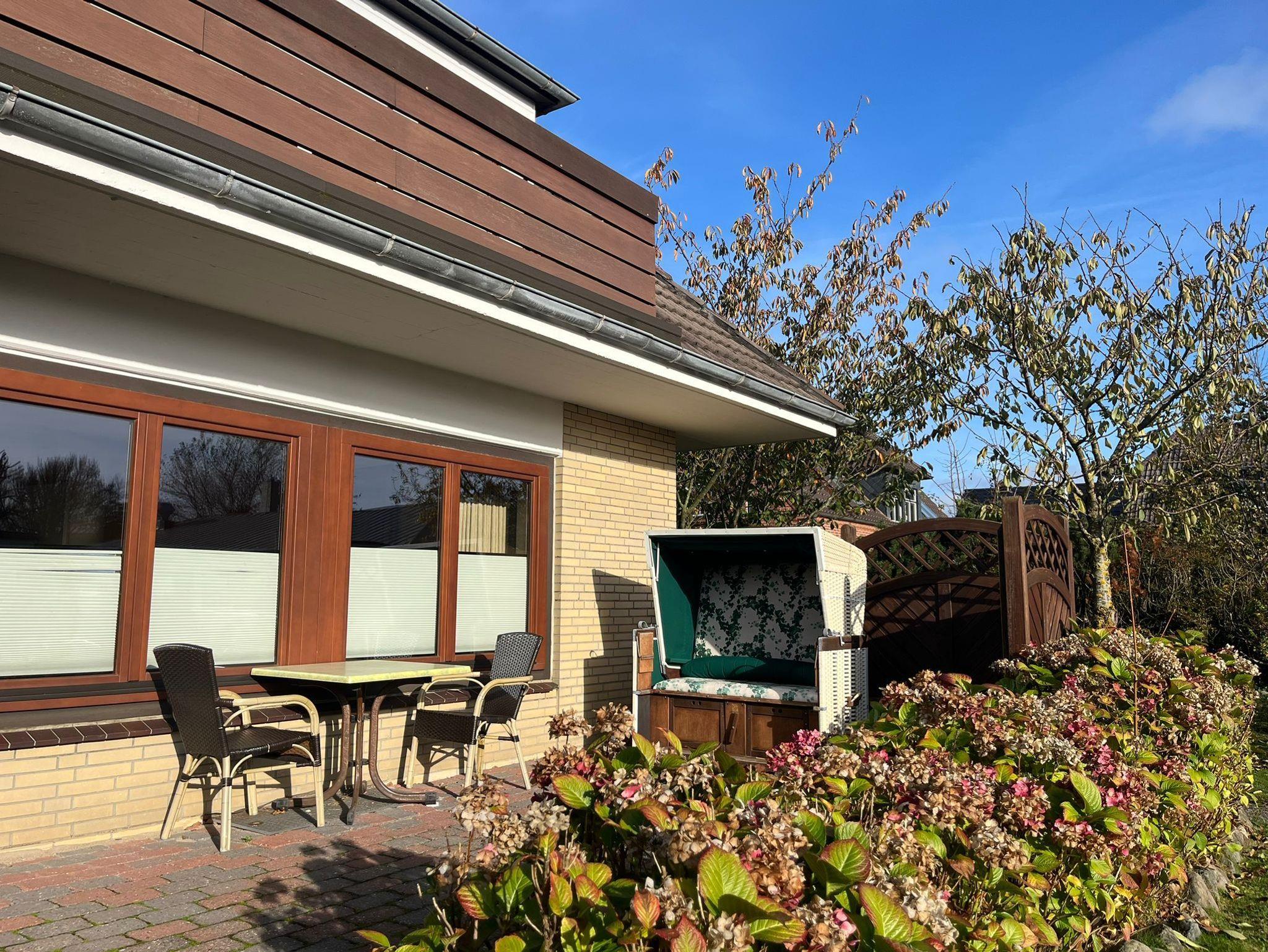 Eine 1-Zimmerwohnung für 2 Personen mit Terrasse befindet sich im Erdgeschoss. Parkmöglichkeit auf der Südseite des Hauses zu erreichen über die Zufahrt über Keitumer Chaussee in den C.-M.-Claasen-Weg.
