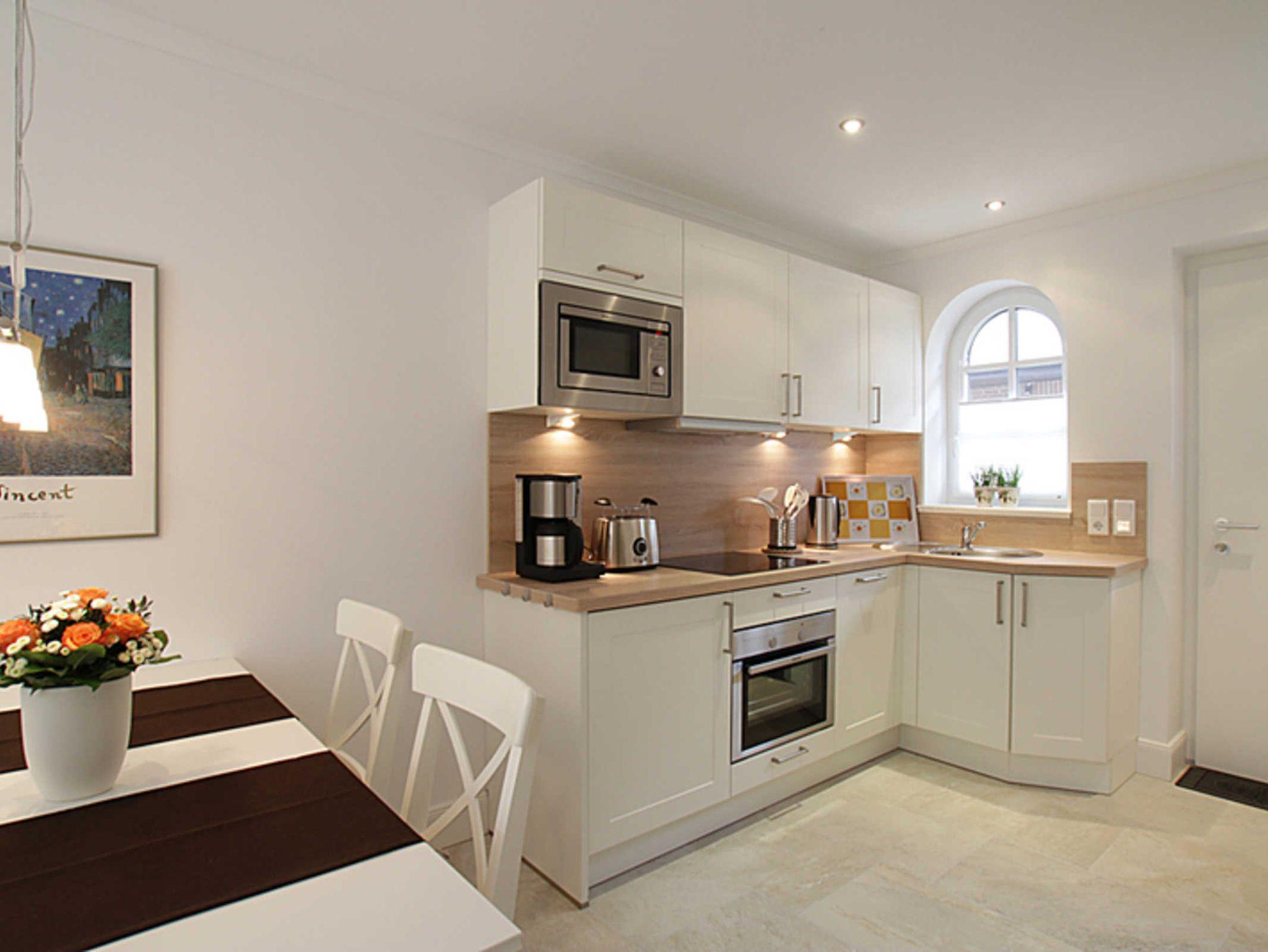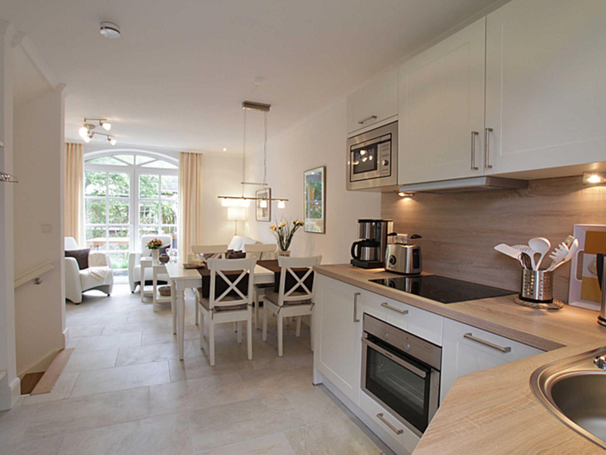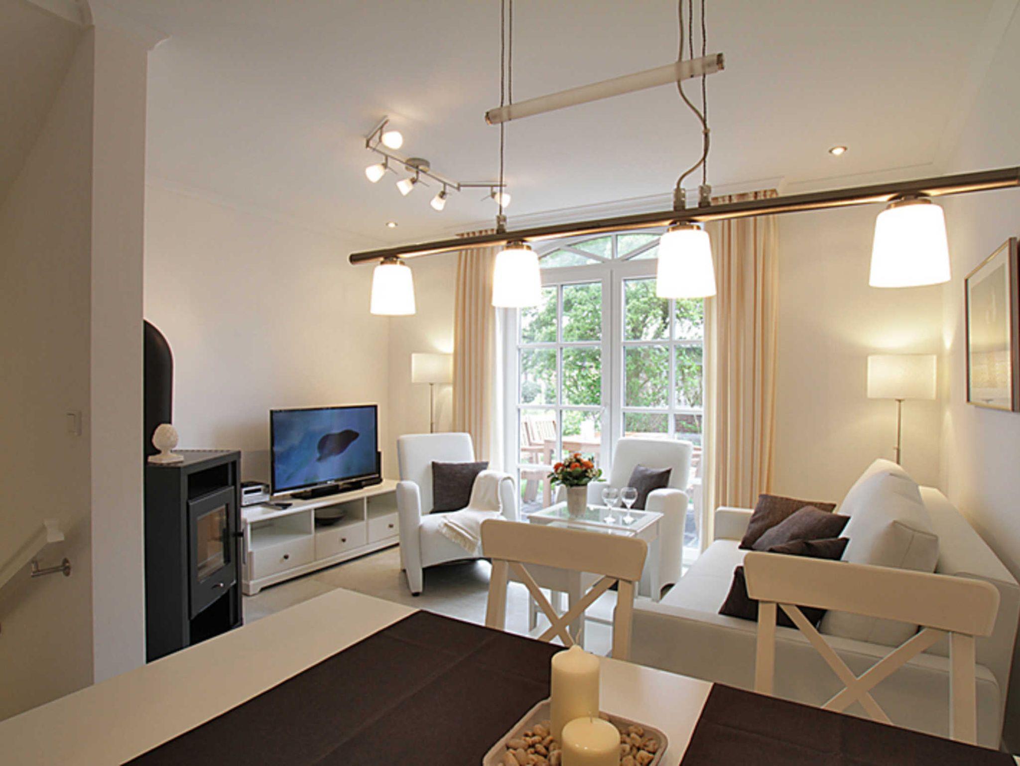 RUHIG, ZENTRAL GELEGEN und CHIC! Reihenhaus mit möblierter TERRASSE nach Westen, KAMINOFEN und schöner Ausstattung. Für bis 4 Personen. Mit elegantem und gemütlichem Wohnbereich mit hochwertiger Einbauküche und Eßplatz, 2 modernen Bädern (eins mit Wanne und Dusche, eins mit Dusche) und zusätzlichem Gäste-WC. Der Kaminofen sorgt in der Herbst- und Winterzeit für heimeliges Ambiente (für Brennholz muß - wenn Kaminofennutzung gewünscht ist - selbst gesorgt werden). Das Haus hat einen separaten Eingang und verfügt über einen Parkplatz vor dem Haus. Vom Haus aus können Sie das Ortszentrum (Friedrichstrasse) in ca. 10 Minuten und den Strand in ca. 15 Minuten zu Fuß erreichen (zum Strand sind es ca. 1,2 km). 56 qm Wohnfläche.