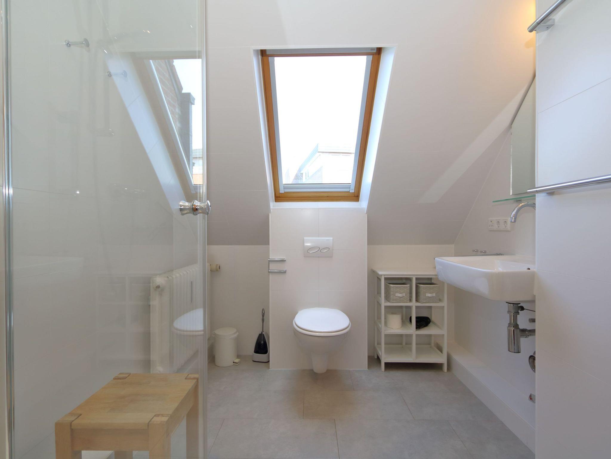 Die niedliche und gut aufgeteilte Ferienwohnung verfügt über einen großzügigen Wohn-und Essbereich, eine Küche und über ein schönes Badezimmer mit einer modernen Dusche (Föhn vorhanden) und einem Velux-Fenster. Es befindet sich unter der Treppe, die nach oben ins Schlafzimmer führt, eine Abstellkammer. Ein Balkon nach Osten ist ebenfalls vorhanden.