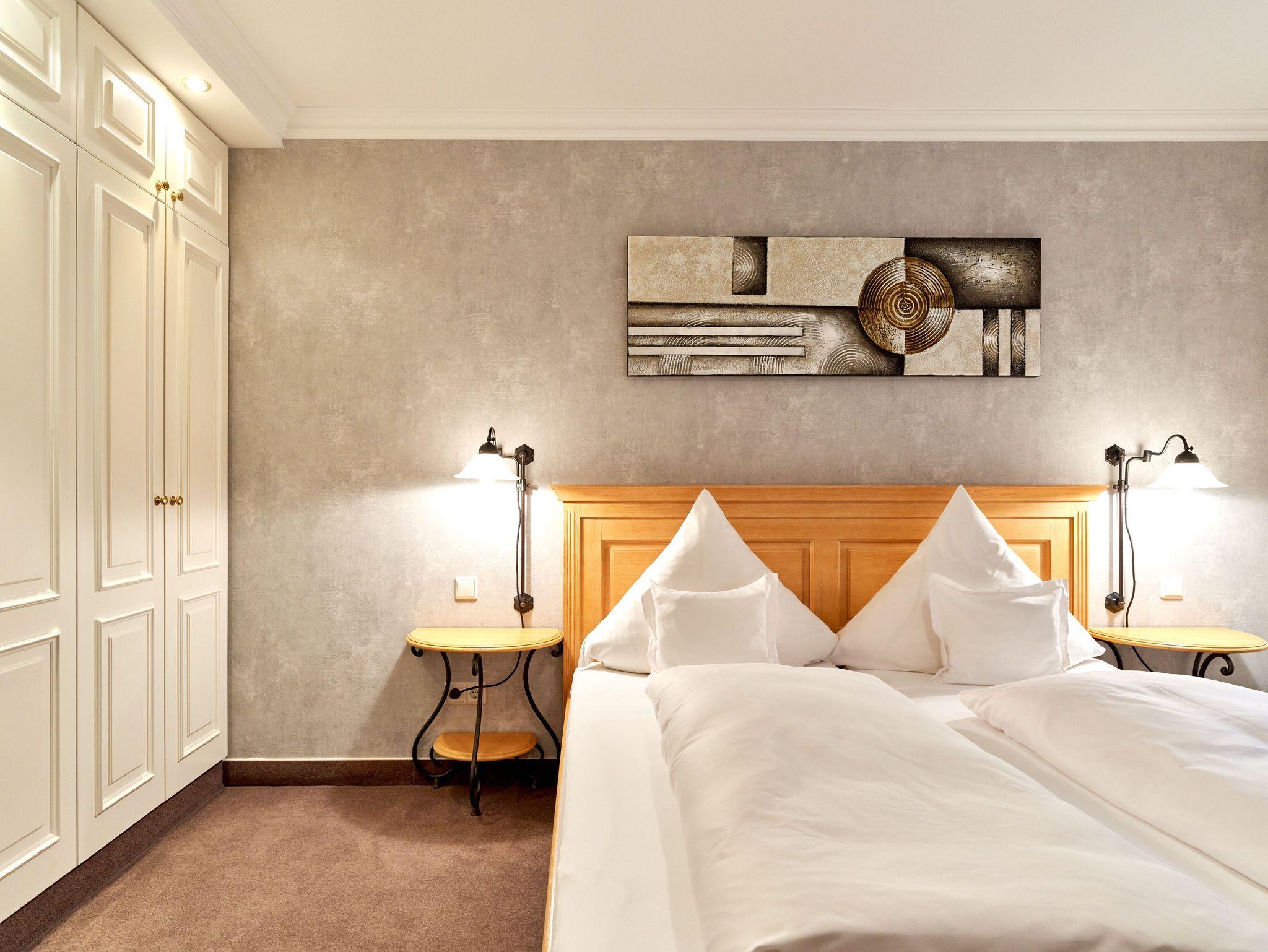 Zwei Doppelbettschlafzimmern, ein Schlafzimmer mit Einzelbett, und ein begehbarer Kleiderschrank.