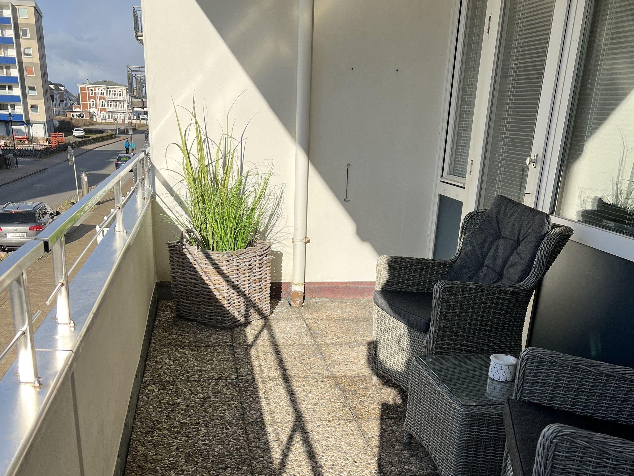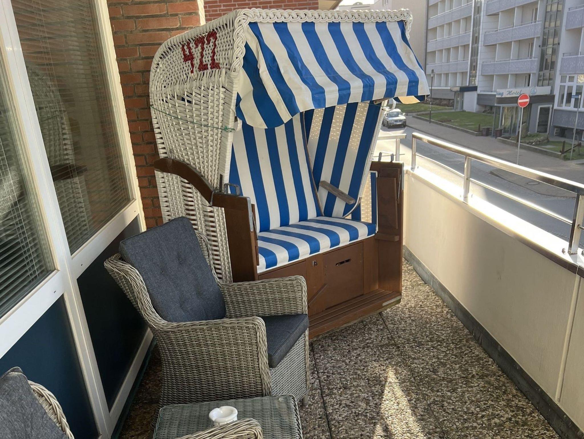 aus einem gemütlichen Stressless-Sessel. Sie schlafen in einem bequemen Boxspringbett auf einer super bequemen Sempur-Matratze. Die Wohnung ist mit warmen, pflegeleichten Vinyl-Designboden ausgestattet; das Bad ist gefliest. Die Küche ist kpl. ausgestattet, hat ein Ceran-Kochfeld, Backofen, Mikrowelle und alles, was man braucht, wenn man sich auch mal selbst verpflegen möchte. Dafür stehen auch die üblichen Dinge wie z. B. Filter-Kaffeemaschine sowie Kaffeevollautomat, Toaster, Wasserkocher und Geschirr bereit. Das freundlich hell geflieste Bad hat eine Dusche mit tiefem Einstieg, ein WC sowie einen komfortablen Waschtisch. Ein Fön ist vorhanden. Auch für Ihre Wäsche brauchen Sie nicht in den Keller. Diese können Sie im Bad waschen, in der sich der Wasch-Trockner befindet. Die Wohnung hat einen Balkon mit Westausrichtung, der aus dem Wohnzimmer erreichbar ist. Dort finden Sie bequeme Balkonmöbel vor sowie einen Strandkorb, in dem Sie bei einem Getränk den Sonnenuntergang genießen können. Der Haupteingang ist über die Bomhoffstraße oder besser, über die Steinmannstraße zu erreichen. Wir haben uns bemüht, möglichst viel Stauraum zur Verfügung zu stellen. Somit können Sie für jedes Wetter etwas einpacken und so lange bleiben, wie Sie wollen. Auch für unsere kleinen Gäste ist gesorgt. Es stehen auf Wunsch und Vorbestellung ein Kleinkinderset (bis 3 Jahre), bestehend aus einem Hochstuhl und einem Reisekinderbett (ohne Bettwäsche) kostenlos zur Verfügung .Sie können alles gut verstauen und werden trotzdem viel Wohlfühlplatz haben.