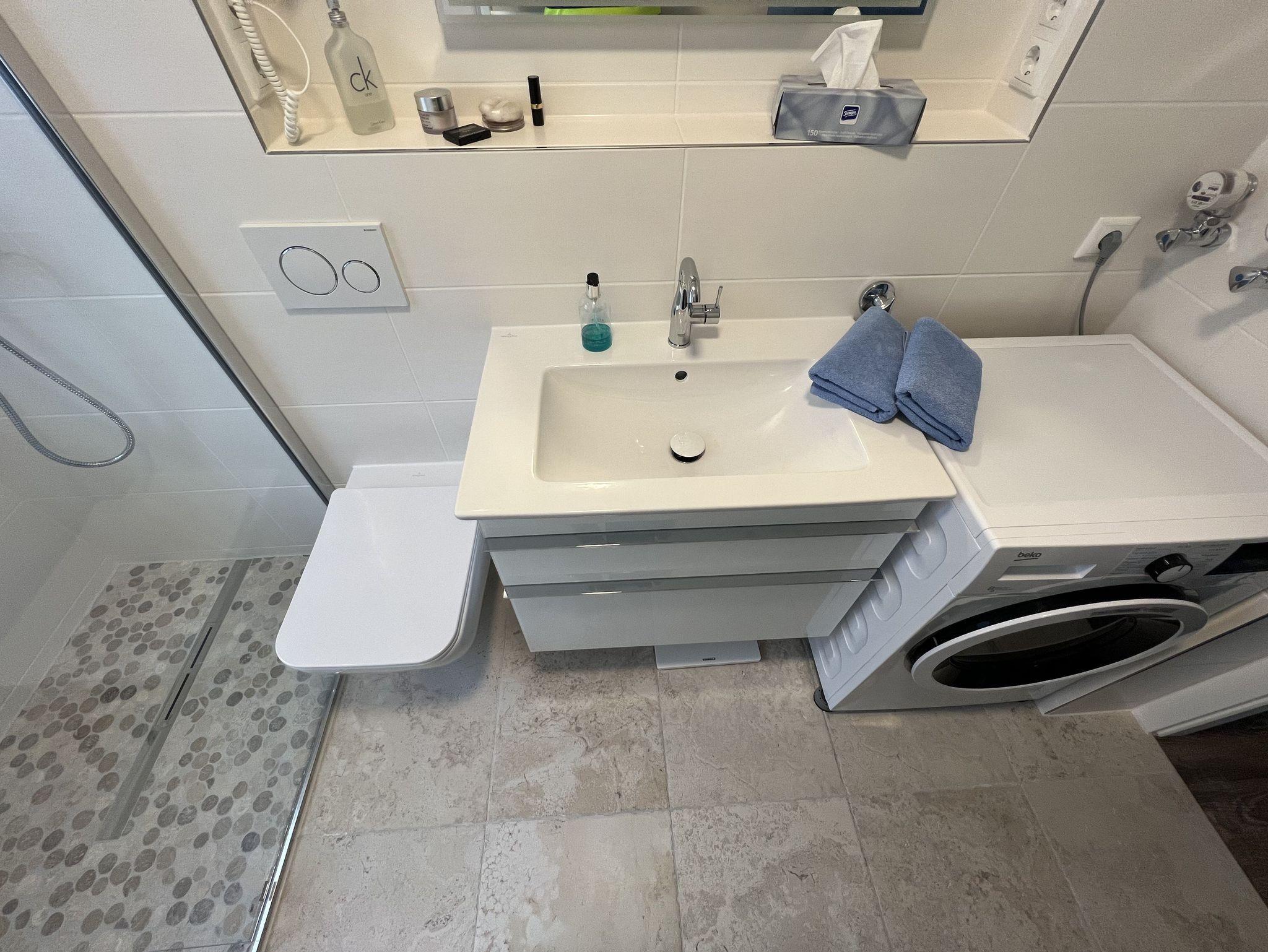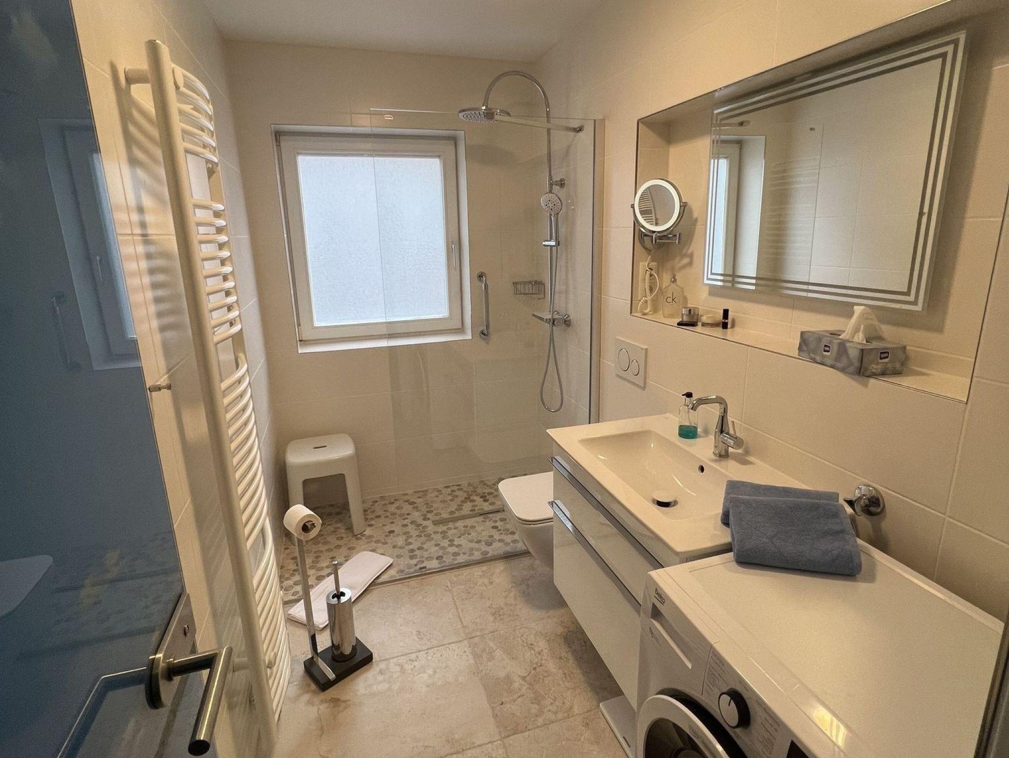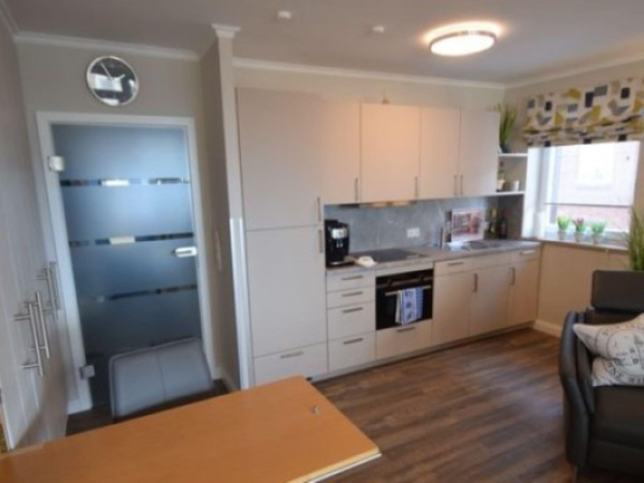 Sie erreichen die Wohnung im 1. Stock über die Treppe oder über den Fahrstuhl, nach 2 Stufen, machen die Tür auf und erleben sofort eine freundliche Wohlfühlatmosphäre, wie Sie es von uns gewohnt sind. Der Urlaub kann beginnen! Die Wohnung ist kpl. renoviert.