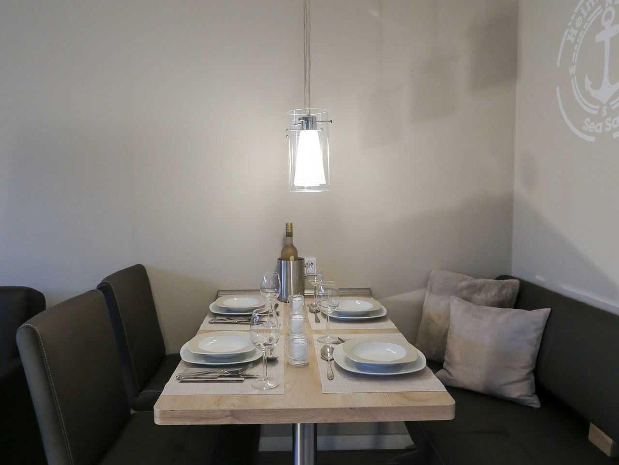 gemütlicher kleiner Essbereich mit Lederbank und Stühlen für 4 Personen