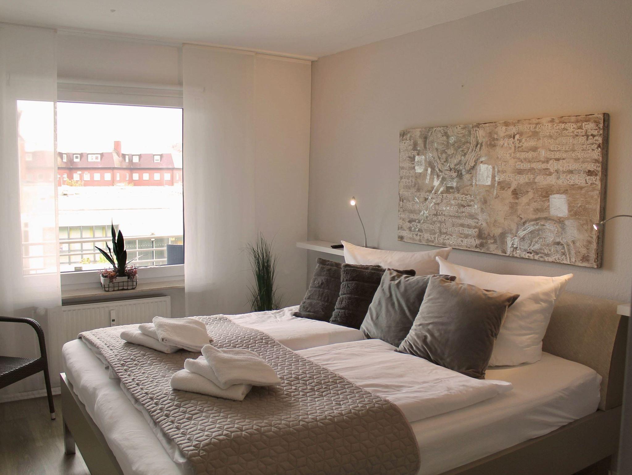 Das hell gestaltete Schlafzimmer, welches mit einem bequemen Doppelbett und einem großen Kleiderschrank ausgestattet ist, lädt Sie ein auch hier ein paar behagliche Stunden des Tages zu verbringen. Fahrstuhl sowie Schwimmbad und Sauna im Haus vorhanden.