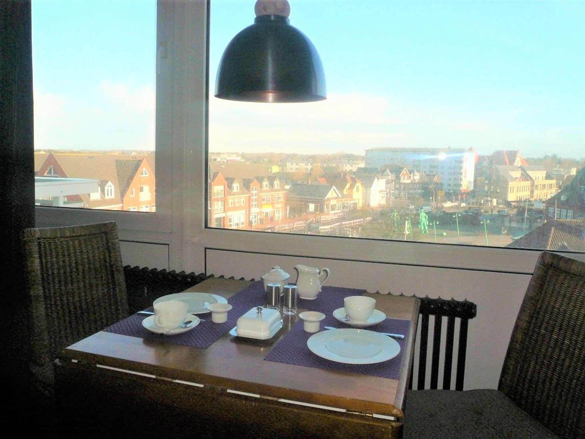 Das Appartementhaus steht an der Fußgängerzone Wilhelmstraße, die in die Friedrichstraße übergeht. Zum Strand sind es ca. 500 m. Das Appartement befindet sich in der 4. Etage mit Blick Richtung Osten.