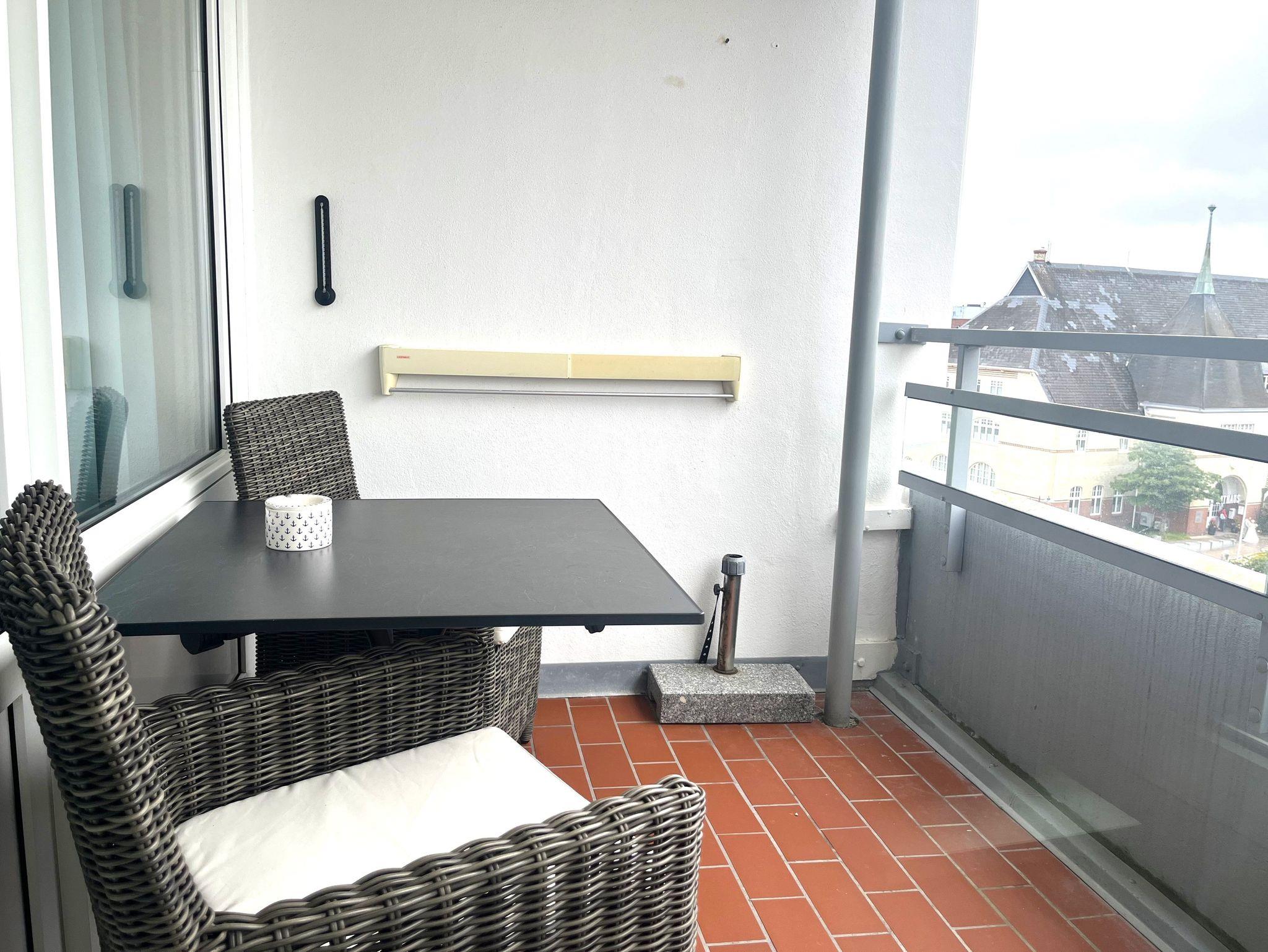 Die Ferienwohnung Skriien Mö befindet sich in der Paulstraße 2 im Sparkassengebäude. Die hochwertig renovierte Wohnung liegt in der 3. Etage des 7-geschossigen Appartementhauses. Durch den Haupteingang gelangen Sie mit dem Aufzug barrierefrei in das Appartement.