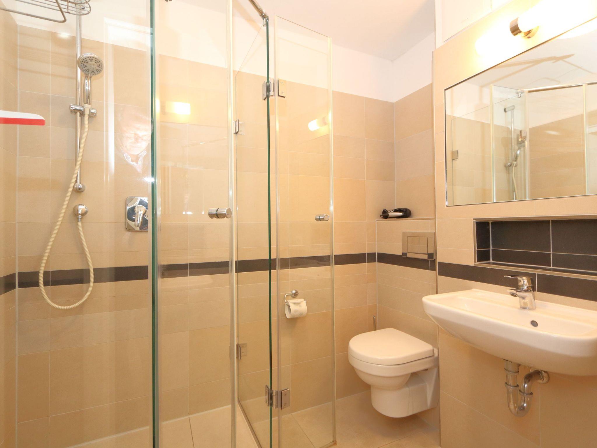 Im Flur befindet sich eine Garderobe. Von hier aus kommen Sie in das moderne Duschbad oder in das neue Schlafzimmer mit Doppelbett und großem Kleiderschrank.