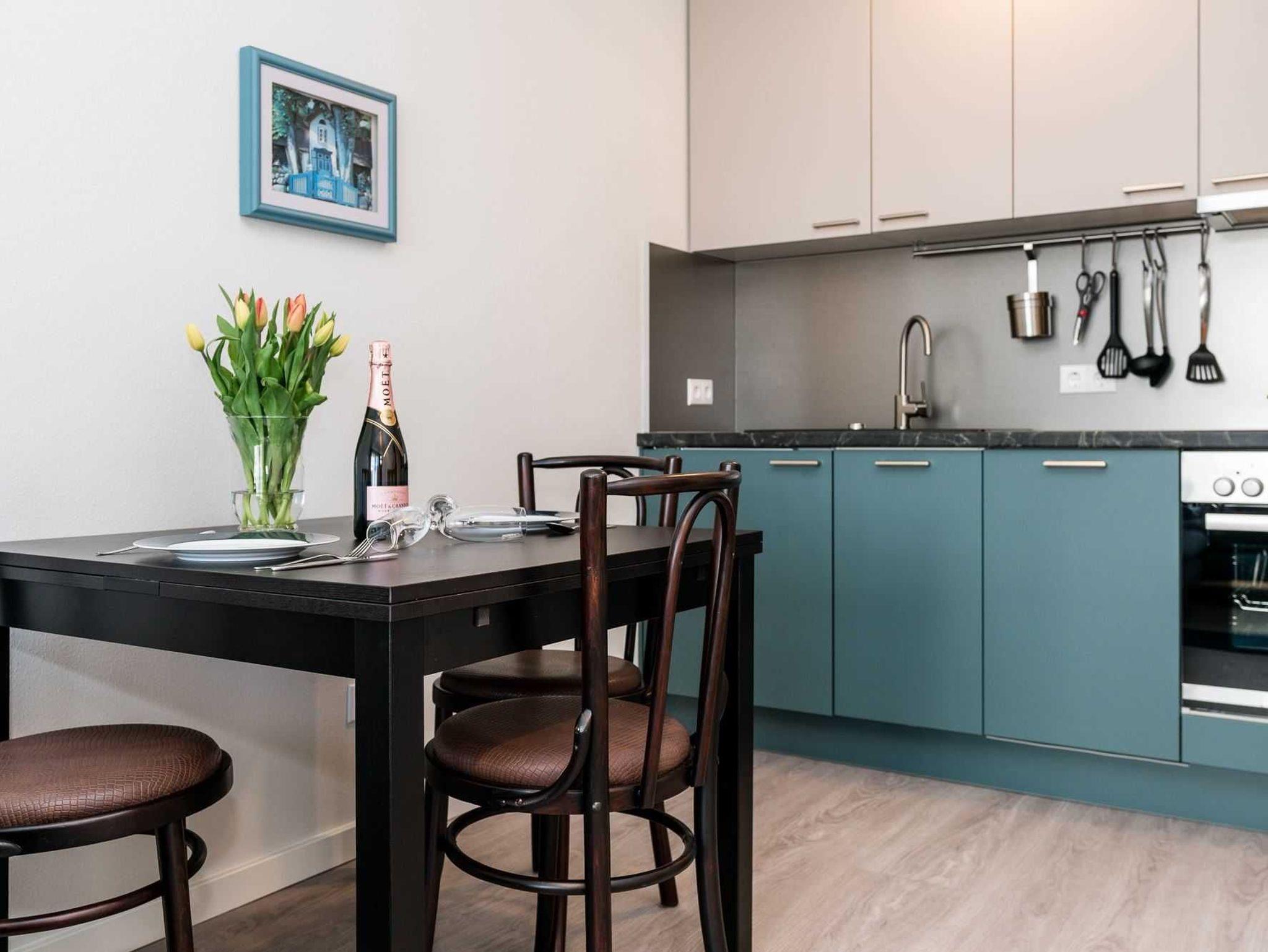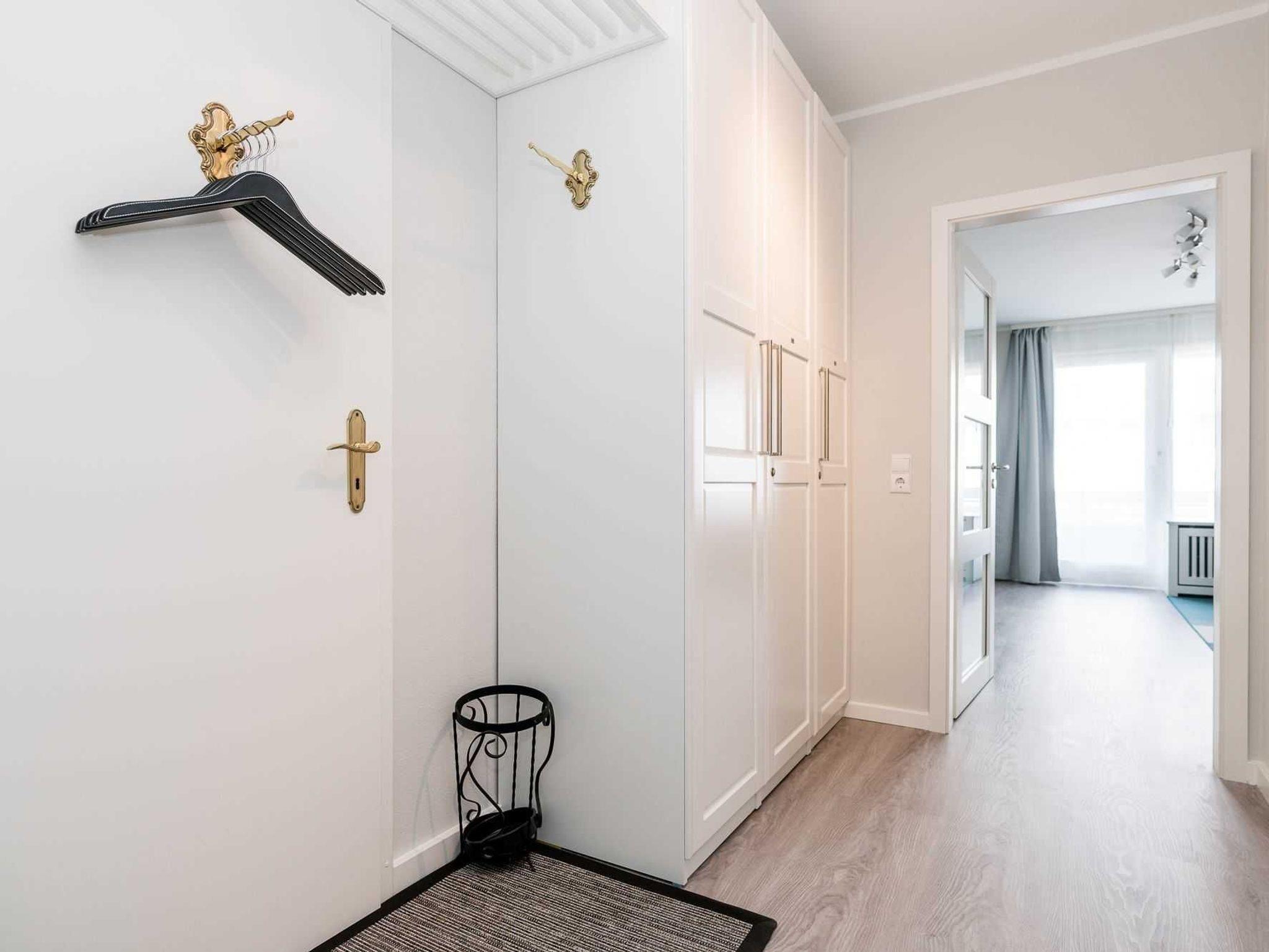 Die Unterkunft liegt im 1. Obergeschoss und hat einen möblierten Balkon nach Westen. Die Wohnung wurde Ende 2017 komplett neu renoviert und erstrahlt im neuen Glanz. In dem modernen kombinierten Wohn/Schlafbereich befindet sich ein gemütliches Doppel-Schrankbett mit Flachbildfernseher und einem DVD-Player. Die Küchenzeile verfügt über einen Geschirrspüler, Backofen, Toaster, Wasserkocher, einer Filter-Kaffeemaschine und einer Tchibo-Cafissimo Kabsel-Maschine. Zudem verfügt die Ferienwohnung über Dusche/WC.