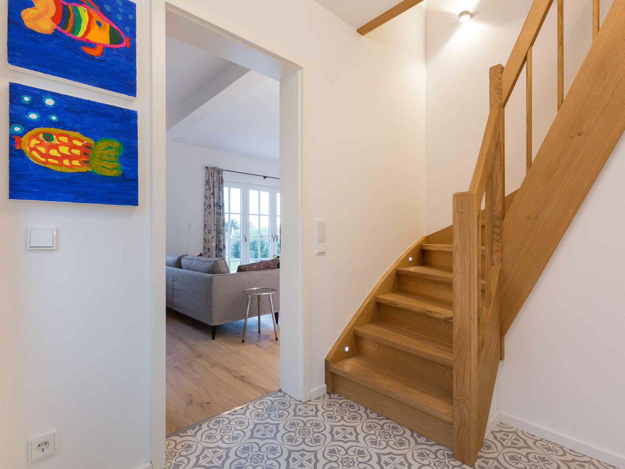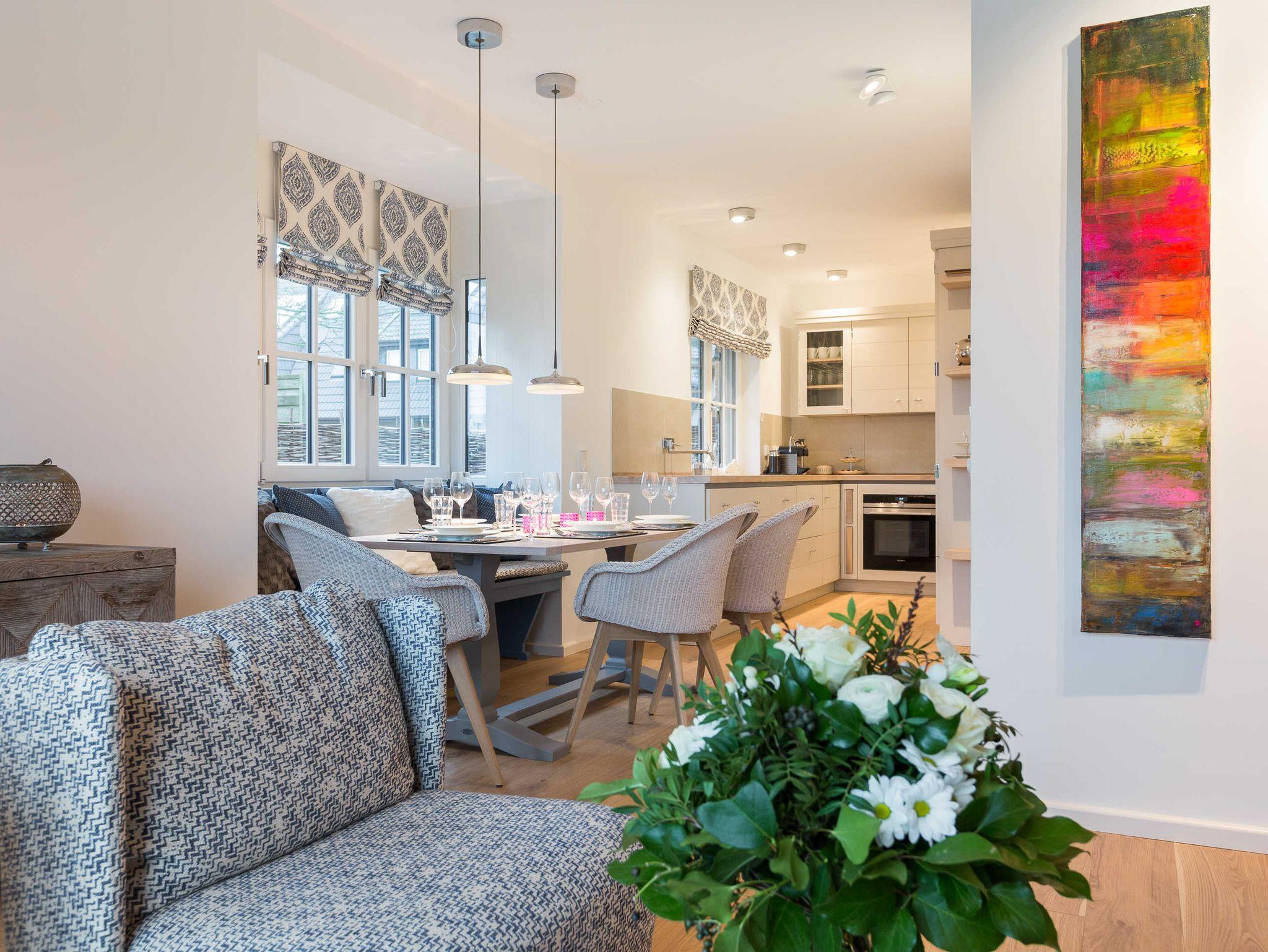 Herzlich Willkommen im zentral gelegenen Inselort Tinnum, der Brücke zwischen dem Sylter Stadt- und Landleben. In einer ruhigen, naturnahen Lage direkt am Deich und an der Grenze zu Westerland, mit Blick auf die Tinnumburg und nur zehn Gehminuten vom Westerländer Strand entfernt, liegt das Haus ?Deichstieg?. Der moderne, gepflegte Klinker-Neubau beherbergt eine erstklassige Doppelhaushälfte für bis zu fünf Personen. Die Räume sind hell und freundlich und mit sehr viel Liebe zum Detail klassisch-elegant eingerichtet. Vor dem Haus befindet sich ein PKW-Stellplatz, weitere Stellplätze befinden sich am Straßenrand. Direkt vor der Tür laden die Tinnumer Wiesen zu einem gemütlichen Spaziergang ein und nur wenige Schritte entfernt befindet sich der Tennisclub Sylt mit seinen Tennisplätzen und einer eigenen Gastronomie. Fünf Gehminuten entfernt befinden sich zahlreiche Supermärkte mit Bäckereifilialen und auch der Bahnhof ist nur fünf Gehminuten entfernt.