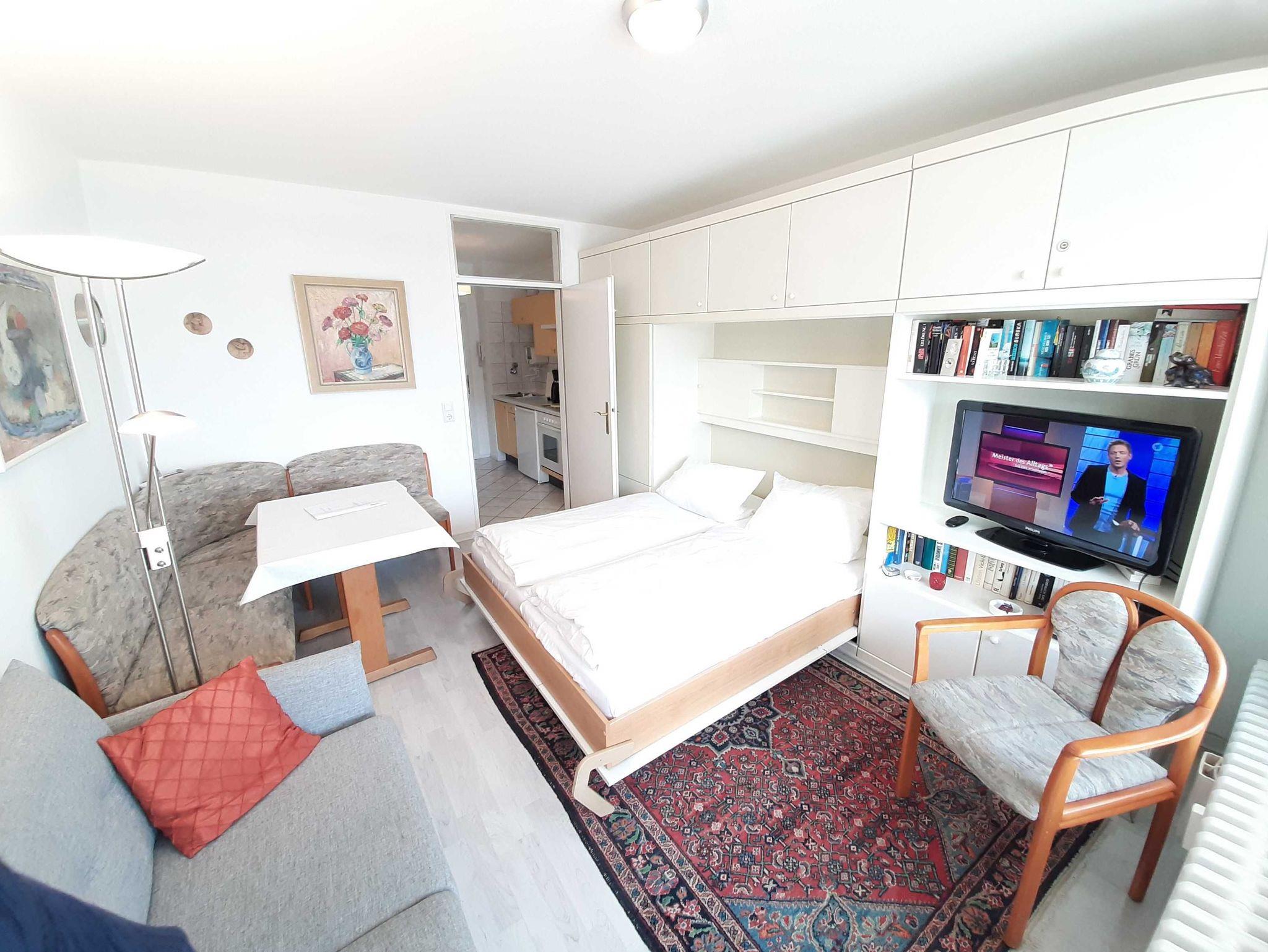 Das mitten im Zentrum Westerlands gelegene 1-Zimmerappartement mit einfacher Ausstattung, befindet sich in der 1. Etage (1W) eines 7-geschossigen Appartementhauses und ist bequem mit dem Aufzug zu erreichen. Die ca 29m² große Nichtraucher-Wohnung besteht aus einem kombiniertem Wohn/Schlafraum, Küche, Dusche/WC, Balkon Parkplatz auf dem Parkdeck Nr. 57. Kostenfreies W-Lan.