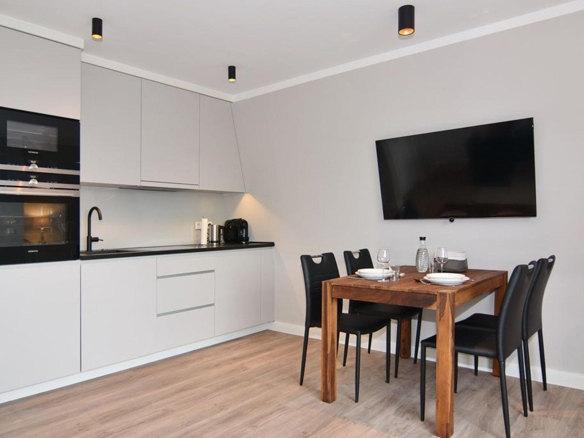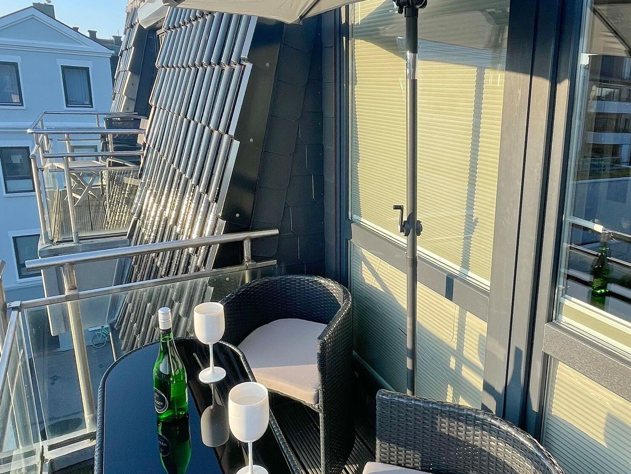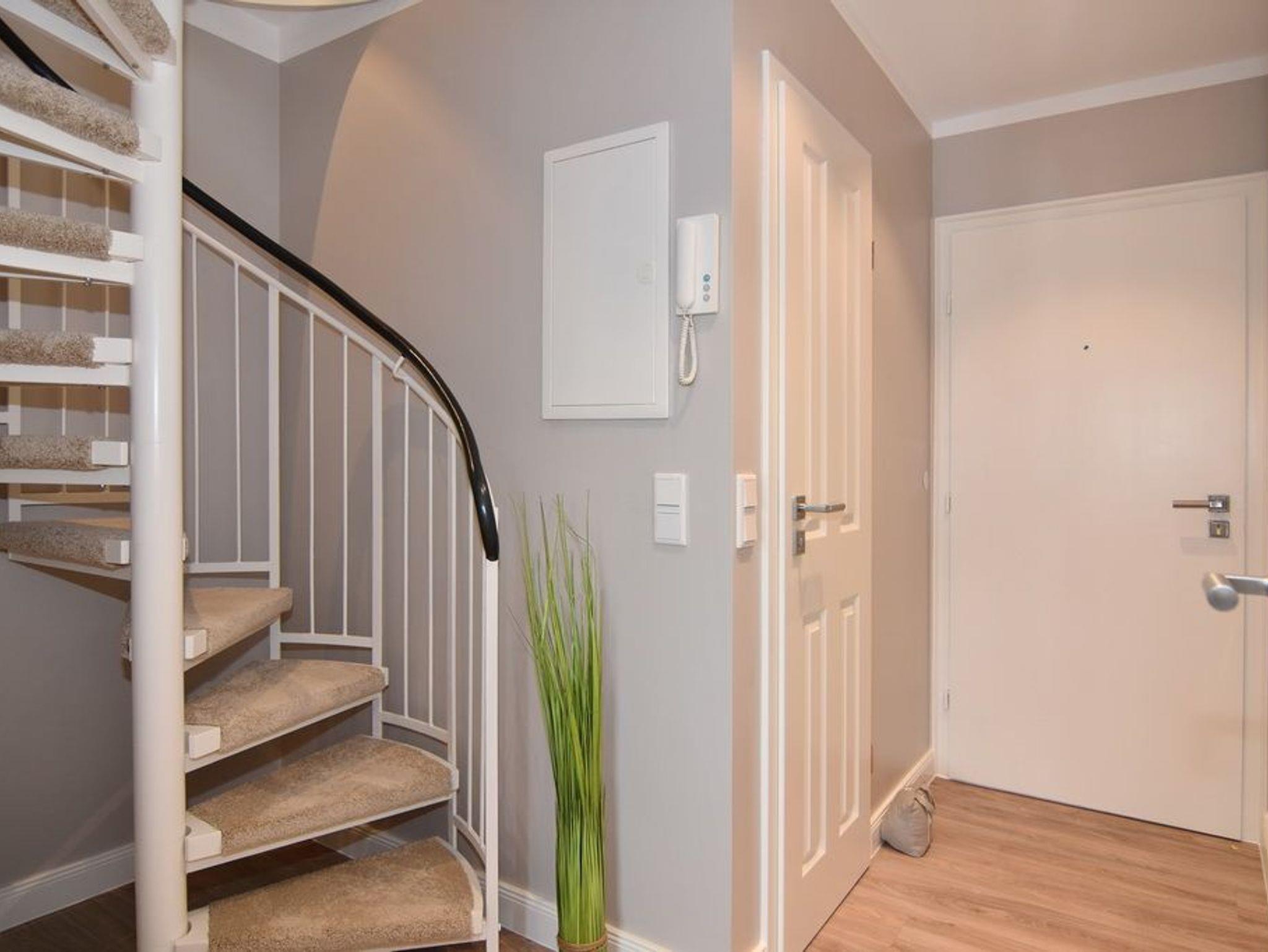 Schöne 2-Zimmer-Wohnung in Innenstadtlage auf 2 Etagen. Ca. 50qm, 3. Etage (Fahrstuhl vorhanden). Wohnzimmer mit Couch mit Schlaffunktion (140x200 cm), 2 Sessel, Essplatz, TV und Musikanlage, WLAN (ohne Gewähr), offene Küche mit Geschirrspüler, Backofen und Mikrowelle, Westbalkon mit Balkonmöbeln. Auf der Ebene befindet sich ein kleines Duschbad/WC. Im offenen Dachgeschoß befindet sich ein Schlafzimmer mit Box-Springbett (160x200 cm ), Kleiderschrank und Flat-TV sowie ein weiteres Duschbad/WC. Die Etage ist über eine Wendeltreppe erreichbar. Duplex-Garagenstellplatz (Bedienungsanleitung dringend beachten, Nutzung auf eigene Gefahr, nicht für SUV/Kombi geeignet, max. Maße/Gewichte: 500 cm Länge, 180 cm Breite, 150 cm Höhe, max. 2.000 kg Gewicht, max. 500 kg Radlast). Nichtraucher-Appartement. Tierhaltung ist nicht gestattet. Bettwäsche und Handtücher sind zur Anreise aufgezogen.