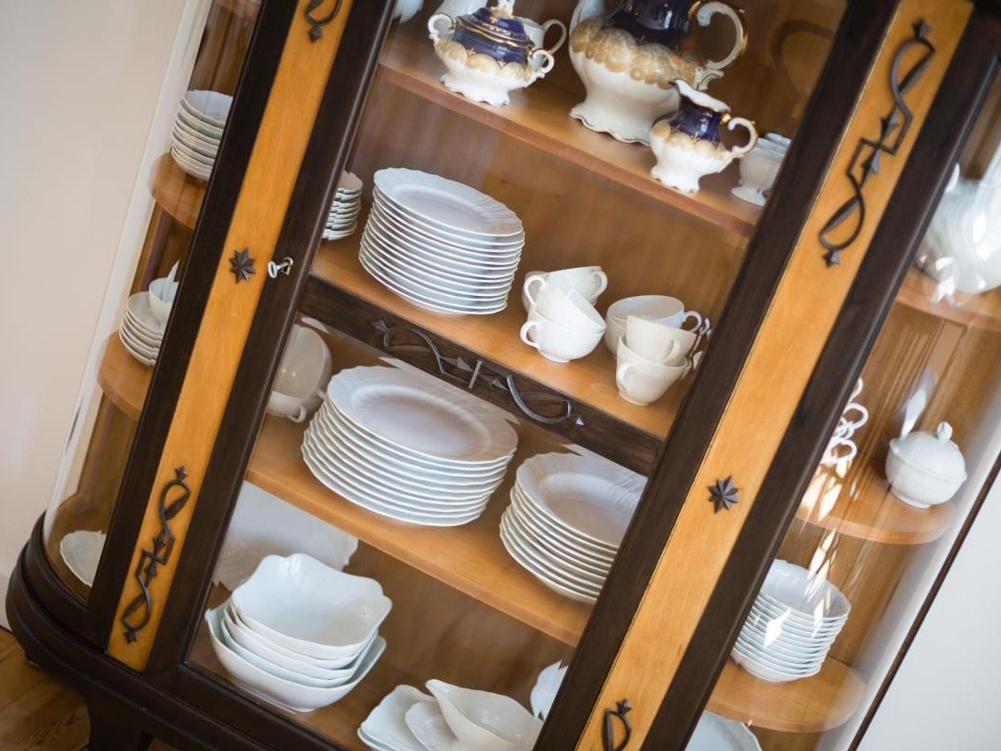 In jeder Ecke entdecken Sie eine gestalterische Kostbarkeit: Hier kontrastiert der XXL Samsung Flat mit einem alten, wirkungsvoll illuminierten Gemälde, dort wetteifern alte Bücher auf einem vermutlich noch viel älteren Holztischlein mit dem eigens in einer Lampenmanufaktur angefertigten puristischen XXL Esstisch-Lampenschirm - der ganz nebenbei Ihnen ein wunderschönes, stimmungsvolles Licht spendet. Der antike Vitrinenschrank mit kostbarem Porzellan ist ebenso ein Hingucker, wie das formvollendete BERKER Porzellan Drehschalterprogramm.