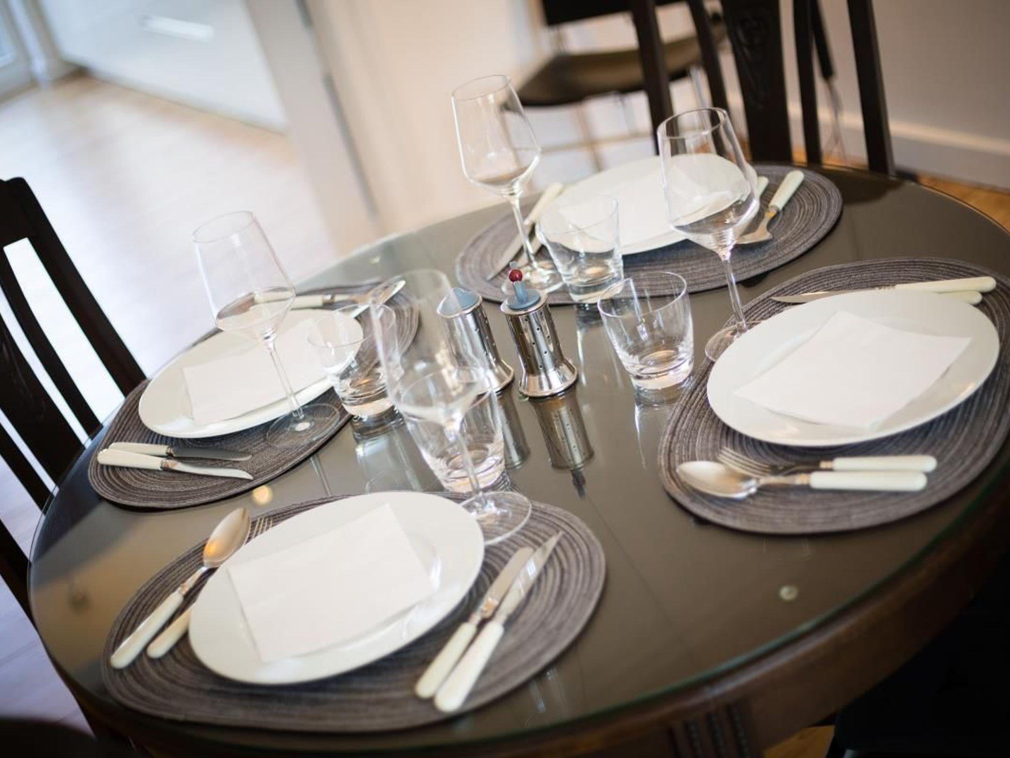 Sie betreten Ihre Wohnung über den luftigen Eingangsbereich mit 3 Meter Deckenhöhe - Ihnen spendet sogleich Ihre Diele viel Platz für Jacken, Schuhe und sonstiges. Den wunderschön gestalteten Wohn- und Essbereich können Sie Dank imposanter Schiebetüren individuell nutzen. 55 Zoll Samsung Flat-TV, WLAN, Telefon und BOSE Mini Hifi verstehen sich von selbst.