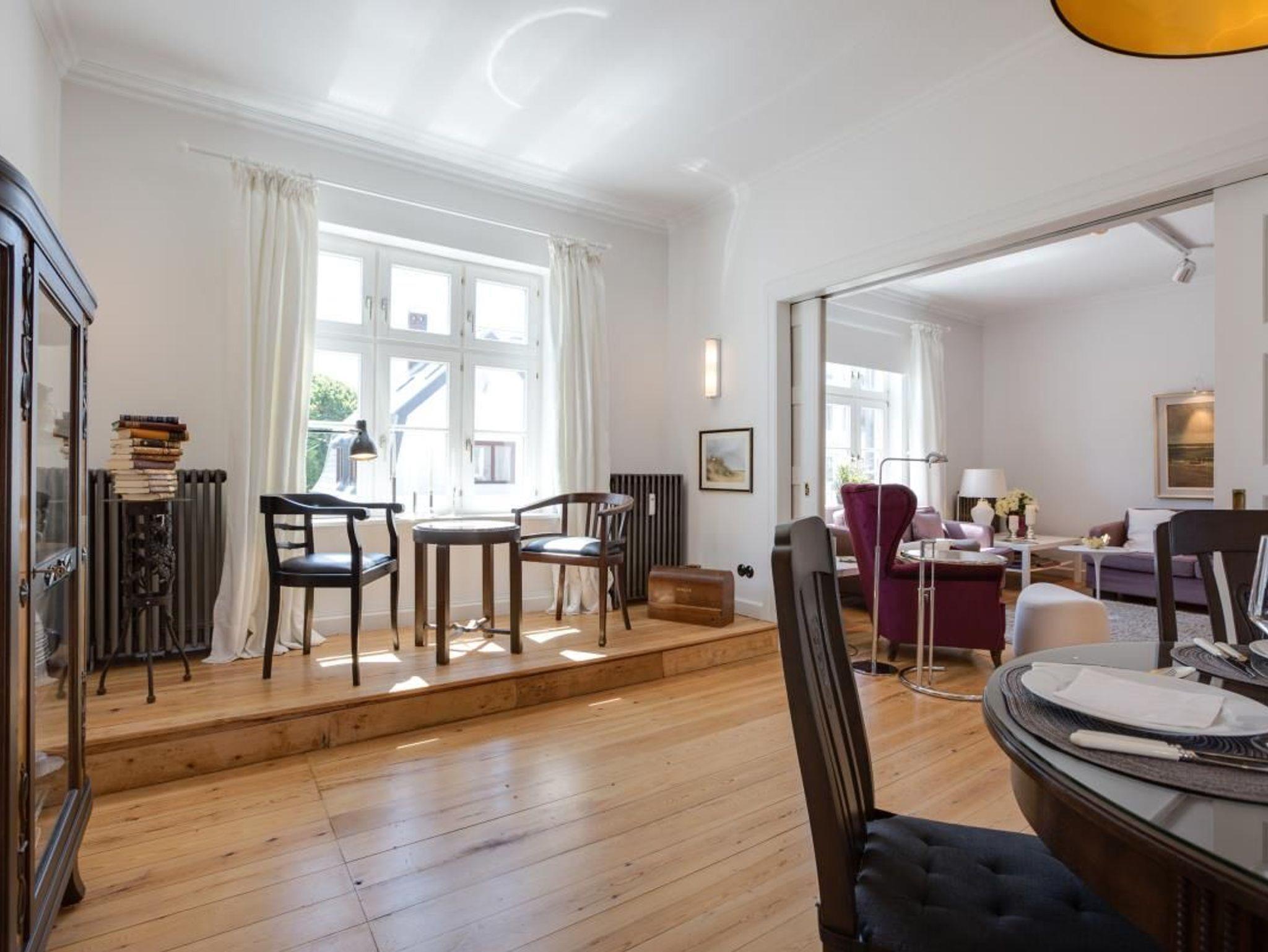 Liebevoll aufgearbeitet Antiquitäten verschmelzen mit stylischer Moderne unter einer 3 Meter Deckenhöhe zu einem urbanen Wohnkonzept. Großzügige 100 qm für bis zu vier Personen verteilen sich auf einer Ebene über eine wunderschöne Pitchpine Dielung.