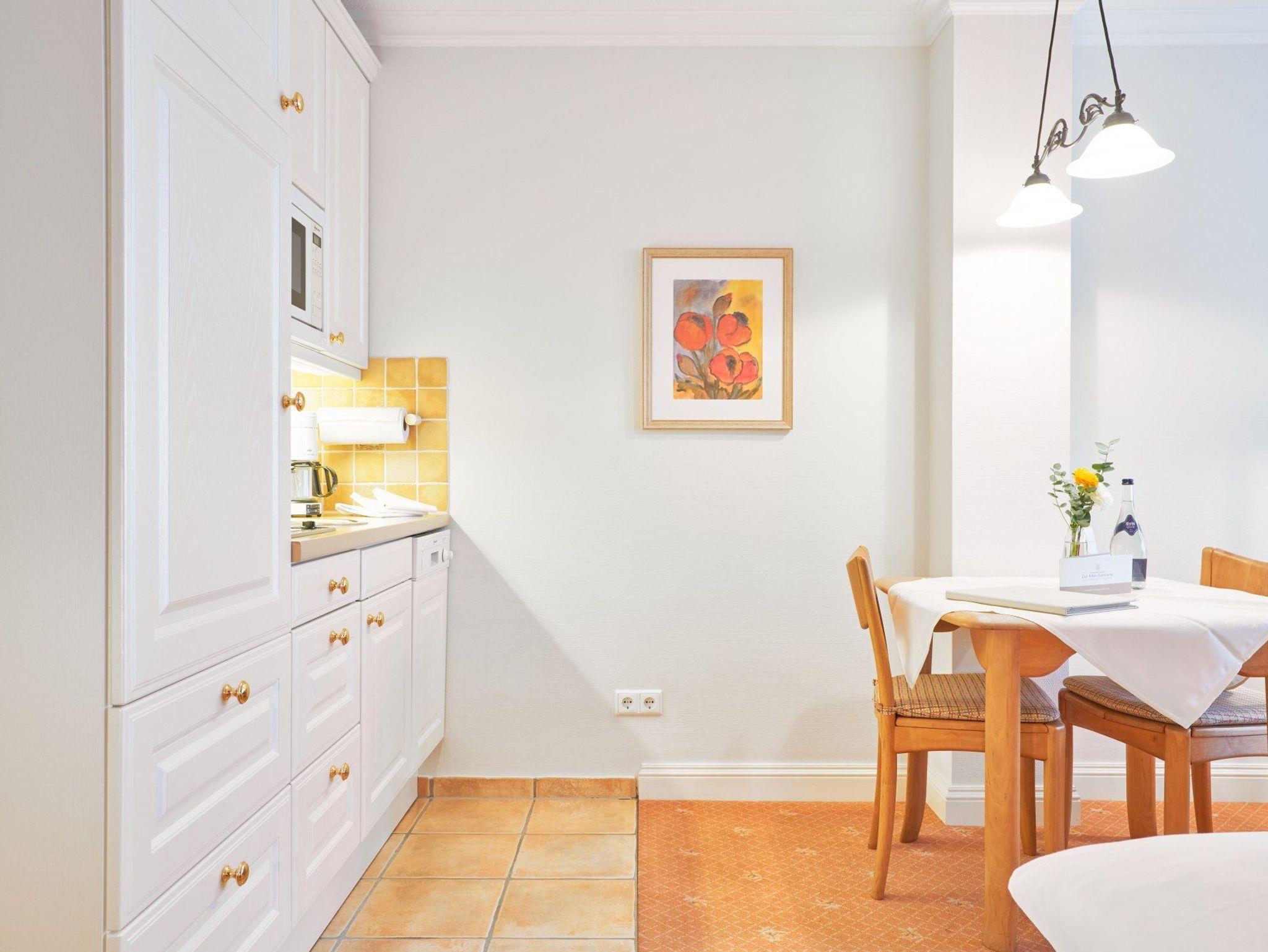 In dieser kleinen aber feinen 1-Zimmer-Ferienwohnung eignet sich für bis zu 2 Personen. Auf ca. 40 m² verteilen sich Wohnzimmer mit integrierter Küche und Essplatz. Ebenfalls hier zu finden ist der Schlafbereich mit einem Schrank- Doppelbett. Das Badezimmer präsentiert sich modern und in hellen Farben mit Dusche, Toilette und Waschbecken. Außerdem bietet diese Ferienwohnung einen begehbaren Kleiderschrank.