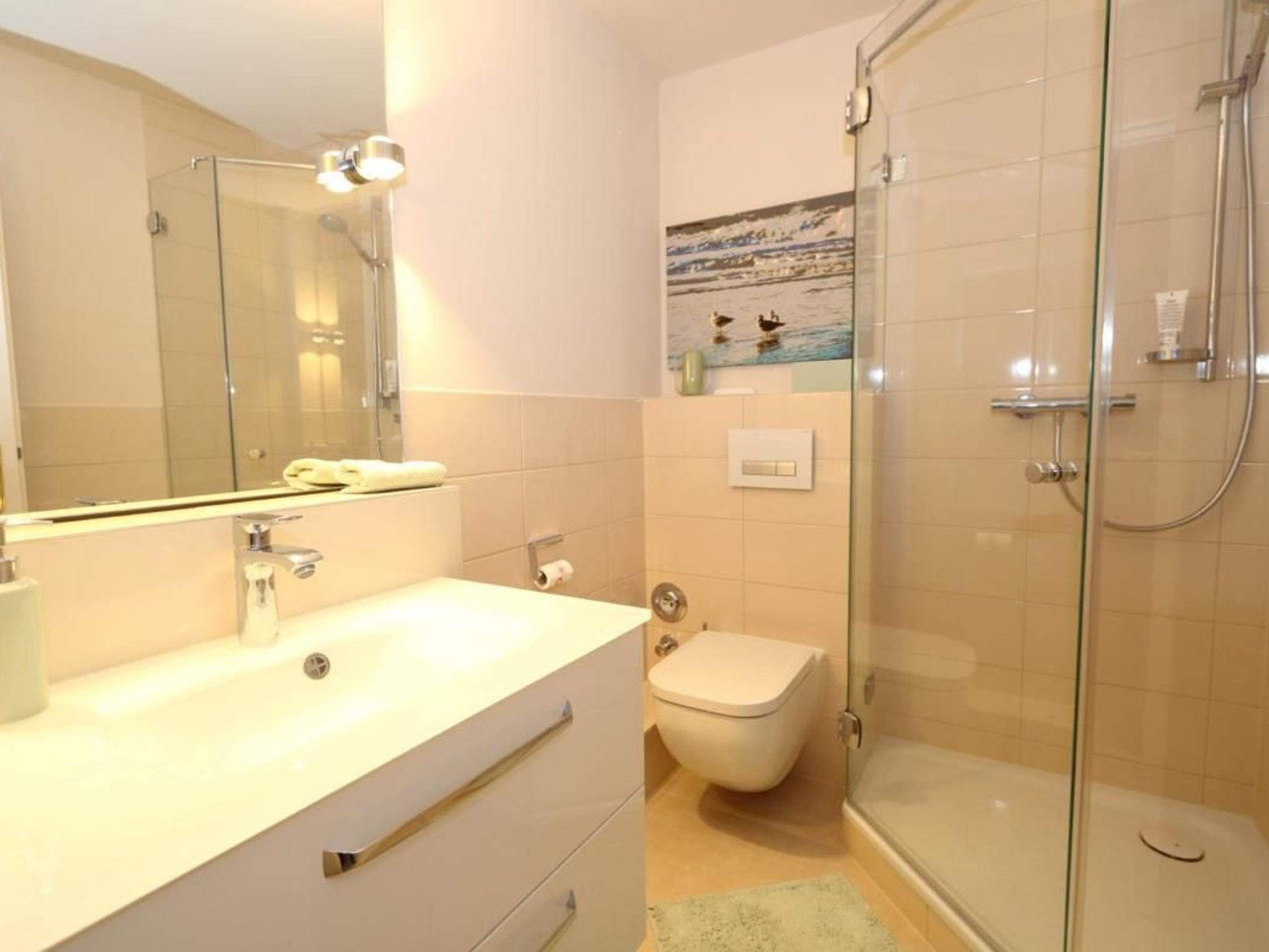Das neu renovierte Appartement hat ein Wohnzimmer mit offener Küche und Zugang zum Balkon, ein Schlafzimmer und ein Duschbad. Im Wohnzimmer steht u.a. eine Schlafcouch, Sideboard und Loewe Flachbildfernseher und Soundanlage sowie W´Lan zugang zur Verfügung. Die Küchenzeile ist komplett ausgestattet. Der Balkon ist mit Tisch und Stühlen ausgestattet.. Das Schlafzimmer hat ein Doppelbett und einen ausreichend großen Kleiderschrank. Beim Bad handelt es sich um ein modernes Duschbad.