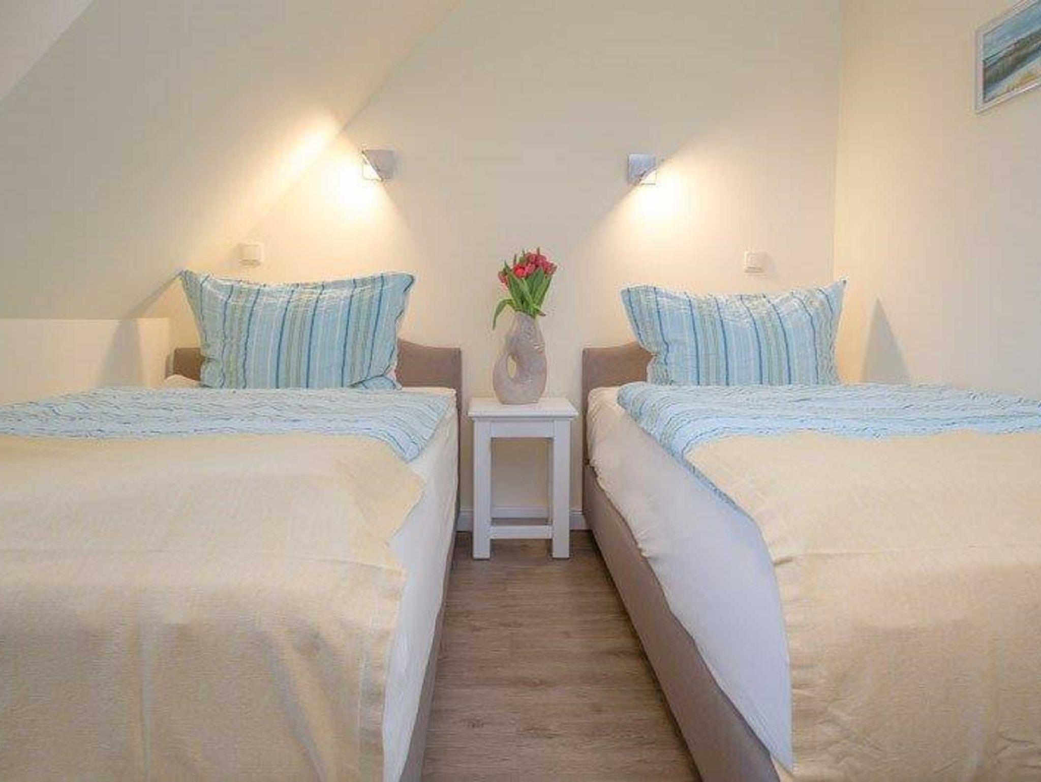 Ein Schlafzimmer mit 2 getrennten Einzelbetten, hochwertige Boxspringbetten (ganz leicht als Doppelbett zusammenzustellen) und ein freundliches und gemütliches Wohnzimmer mit grossem, ausziehbarem Esstisch und Flachbildschirm, DVD, Radio mit CD. W-Lan kostenfrei. Couch zum Umbau für 1-2 weitere Schlafmöglichkeiten. Grosser sonniger Ostbalkon mit Sitzgelegenheiten und einem Strandkorb. Fenster zum Süden mit Blick zu den Dünen und Sonne am Nachmittag. Neurenoviertes Duschbad mit Fenster, grosszügiger Flur und eine sehr gut ausgestattete Küche mit Spülmaschine, 4-Plattenherd, Kaffeemaschine, Nespressomaschine, Wasserkocher, Eierkocher und Microwelle mit Backofen und Fenster zum Balkon ( Durchreiche zum Frühstück in der Morgensonne ). Die Ferienwohnung Heiderose (ca. 50m²): für 4 Personen möglich, für 3 Personen gemütlich. Eigener Parkplatz direkt am Haus, Fahrradständer am Haus Obwohl zentral gelegen (3 Min. zur Friedrichstrasse und 3 Minuten zum Strand) absolut ruhige Lage in einer kleinen sehr gepflegten Wohneinheit. Wunderschöner ruhiger Balkon mit Blick ins Grüne. Zum Bahnhof 10 Min zu laufen.