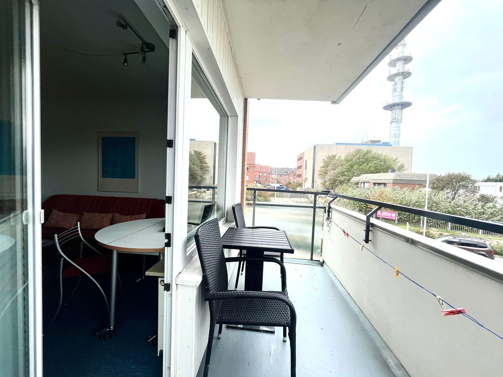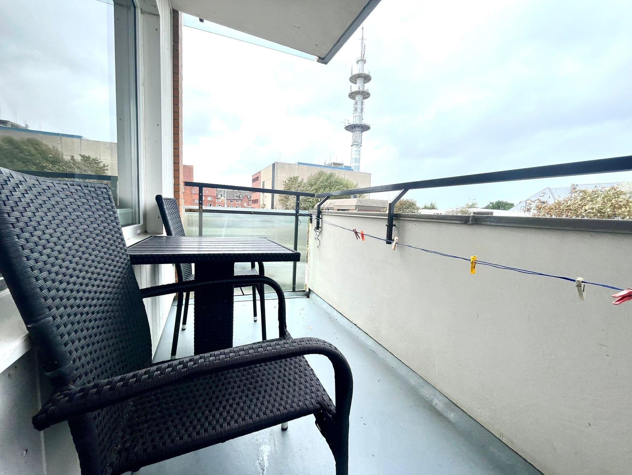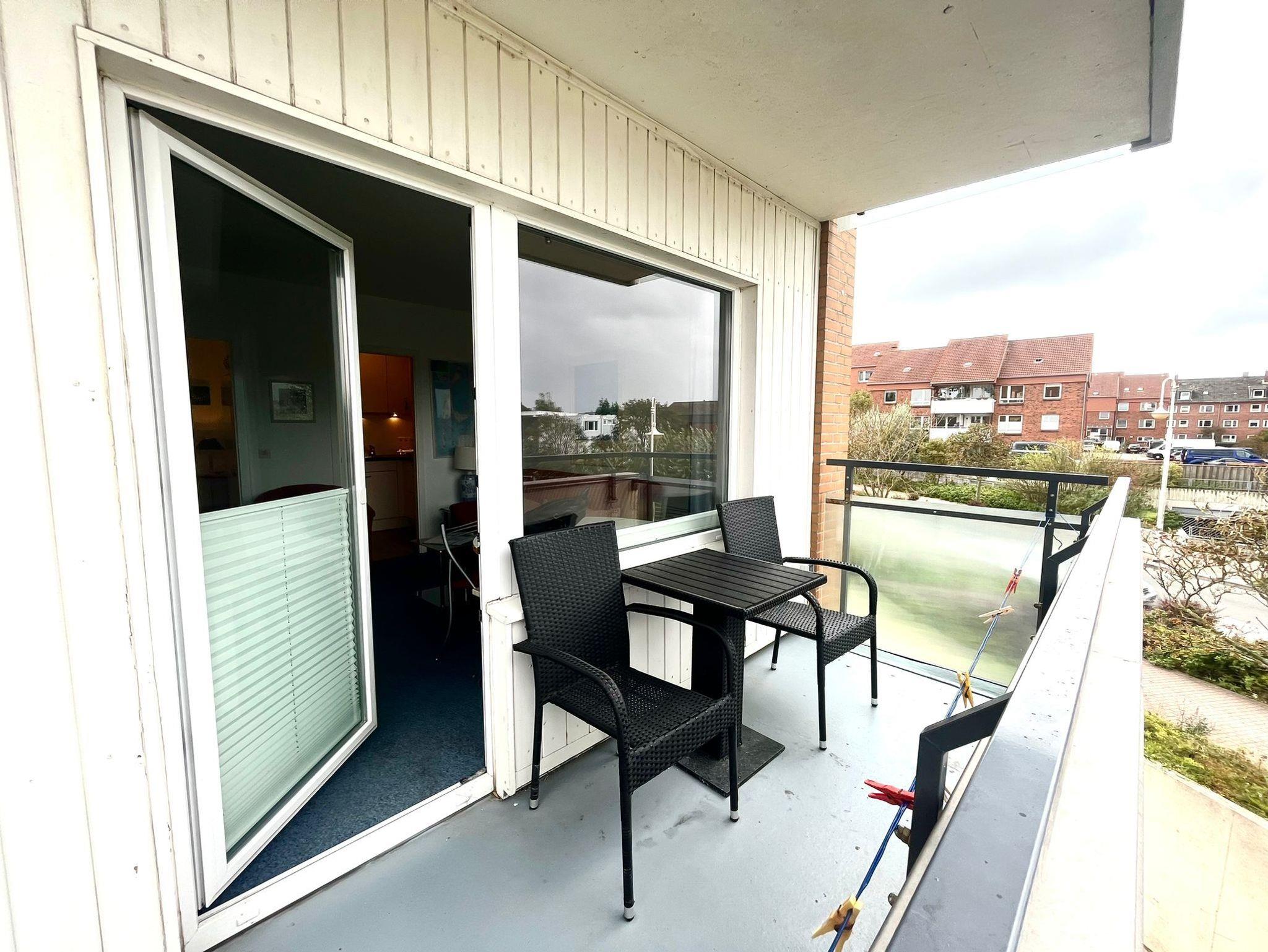 Der Balkon mit neuen Gartenmobilar zum Nord/ West läd zum verweilen ein.