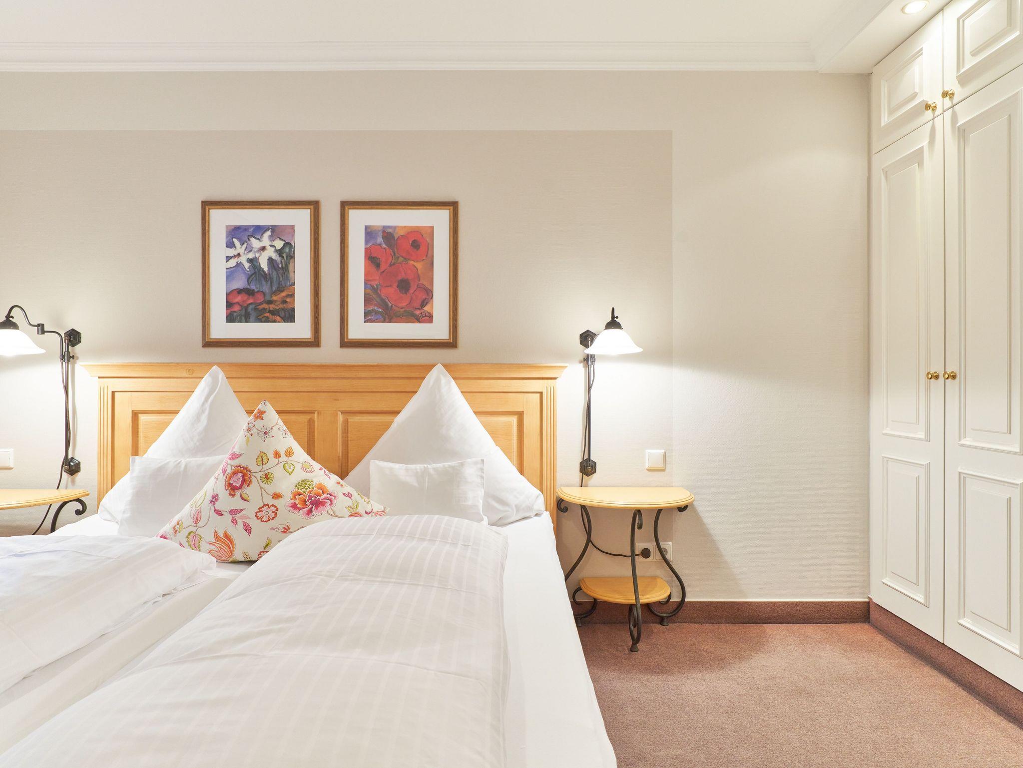 Zwei Doppelbettschlafzimmer, ein Schlafzimmer mit Einzelbett, und ein begehbarer Kleiderschrank.