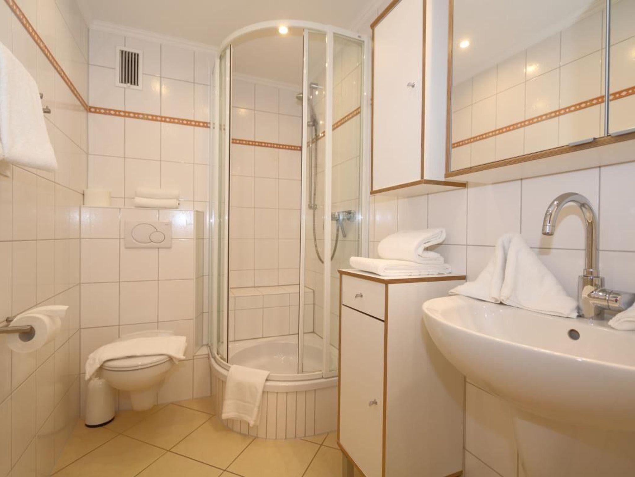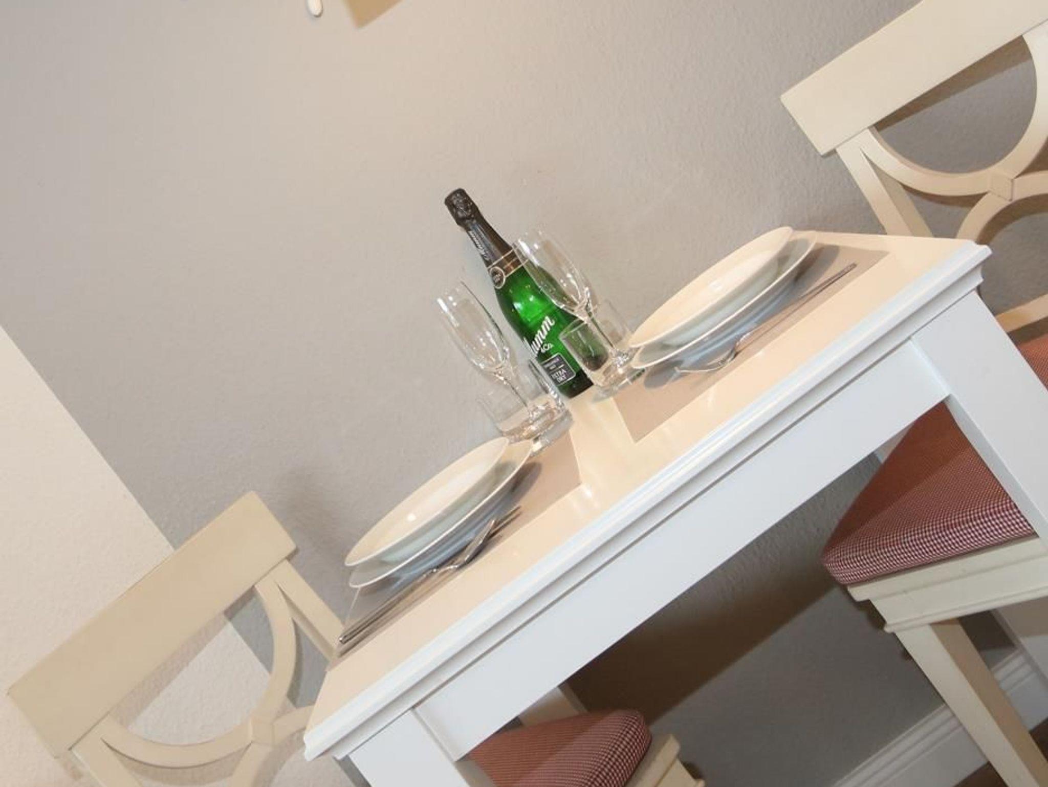 Der große Westbalkon kann vom Wohnzimmer aus betreten werden. Die angrenzende Küche ist mit allen notwendigen Geräten und Utensilien ausgestattet. Telefon mit Flatrate ins deutsche Festnetz, WLAN und ein Radio mit Docking-Station und CD-Player sind vorhanden. Das Bad hat eine Dusche und einen großen Waschtisch.