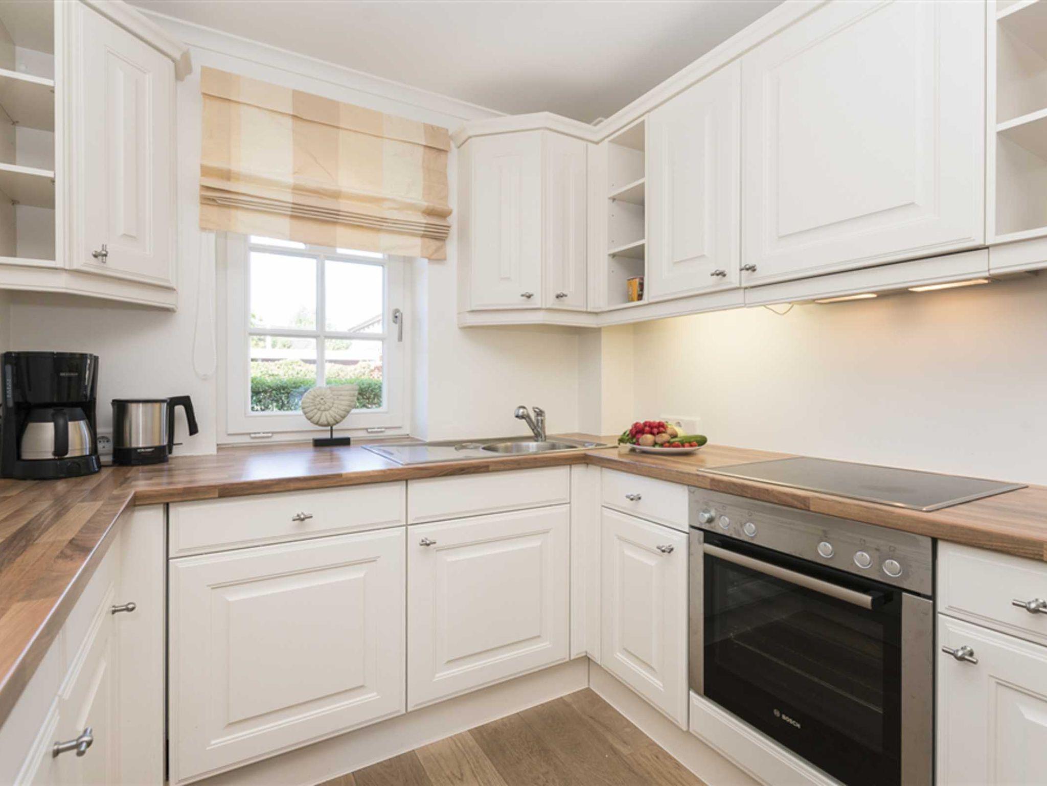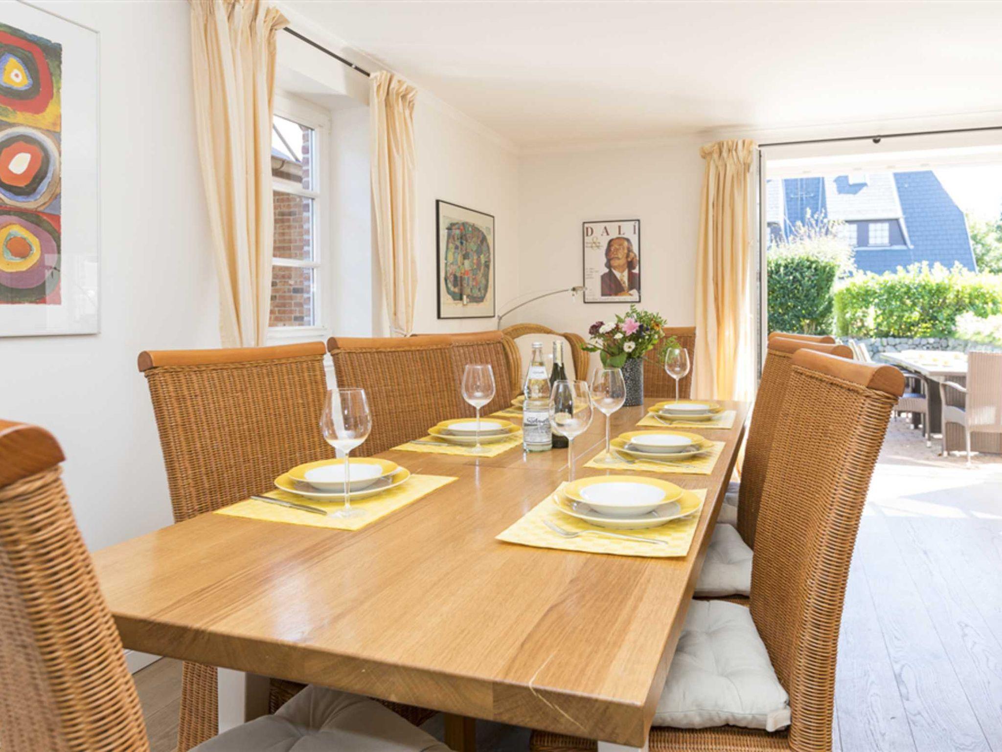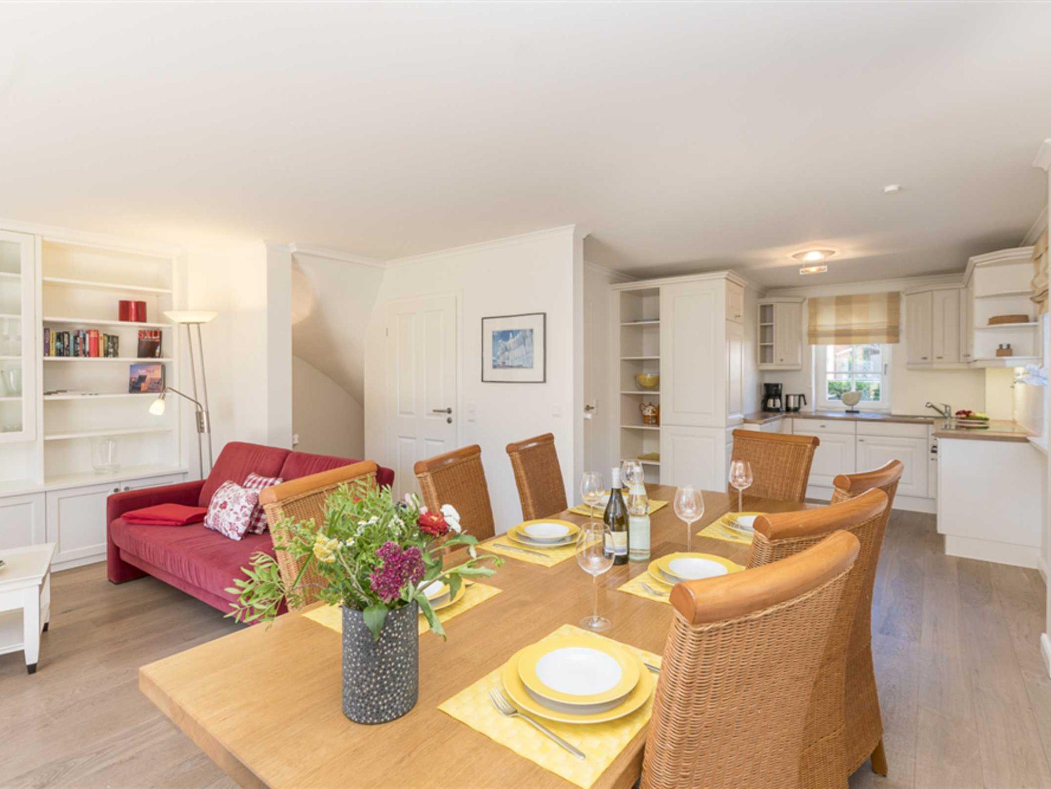 Moderne Einrichtung in neuen hellen Farben vermittelt eine wohlige Atmosphäre. Zu dem Balkon befindet sich im Garten außerdem eine Terrasse mit Strandkorb und Gartenmöbeln. Das wirklich ideale Objekt für Ihren traumhaften Familienurlaub.