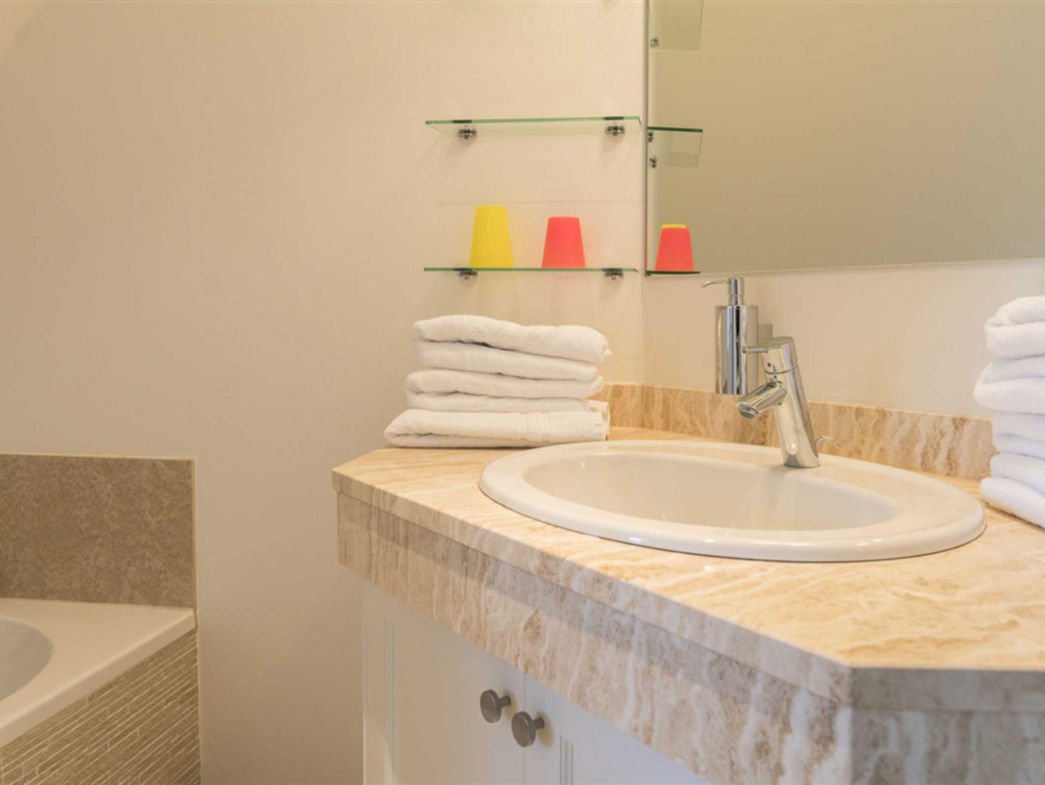Im Ergeschoss befindet sich das großzügige Wohnzimmer mit der Essecke für insgesamt bis zu 8 Personen. Außerdem befindet sich im Erdgeschoss der abgetrennte Küchenbereich und ein Gäste-WC. Das Untergeschoss verfügt über 2 Schlafzimmer mit jeweils einem Doppelbett: Ein schönes Bad mit WC, Badewanne und getrennter Dusche steht Ihnen im UG ebenso zur Verfügung wie auch eine Waschmaschine.