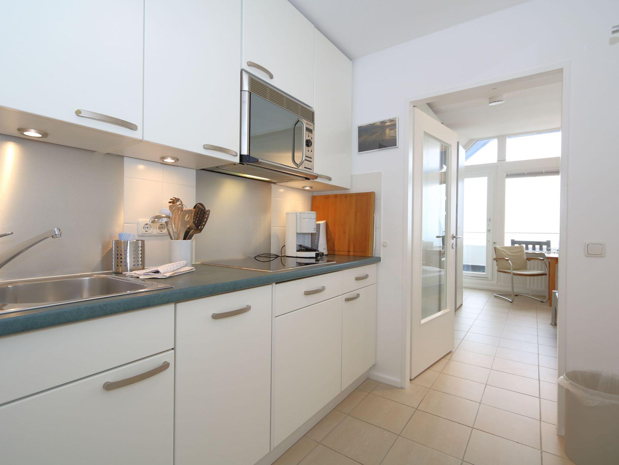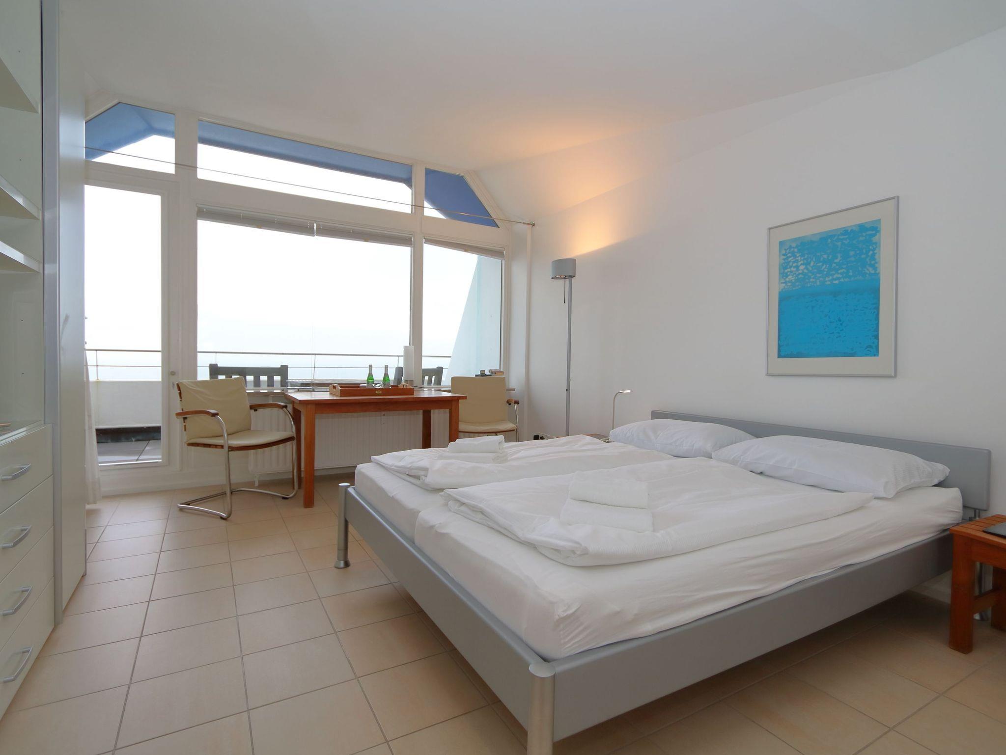 Diese helle Ferienwohnung lässt Sie in der Früh mit einem klaren Blick über das Meer, den Strand und die Kurmuschel aufwachen. Ausgestattet mit einer Einbauküche, einem schönen Badezimmer mit Duschwanne und Glaswand und einem Schlaf-und Wohnbereich, ist der Aufenthalt in diesem Appartement vielseitig für Sie zu genießen.