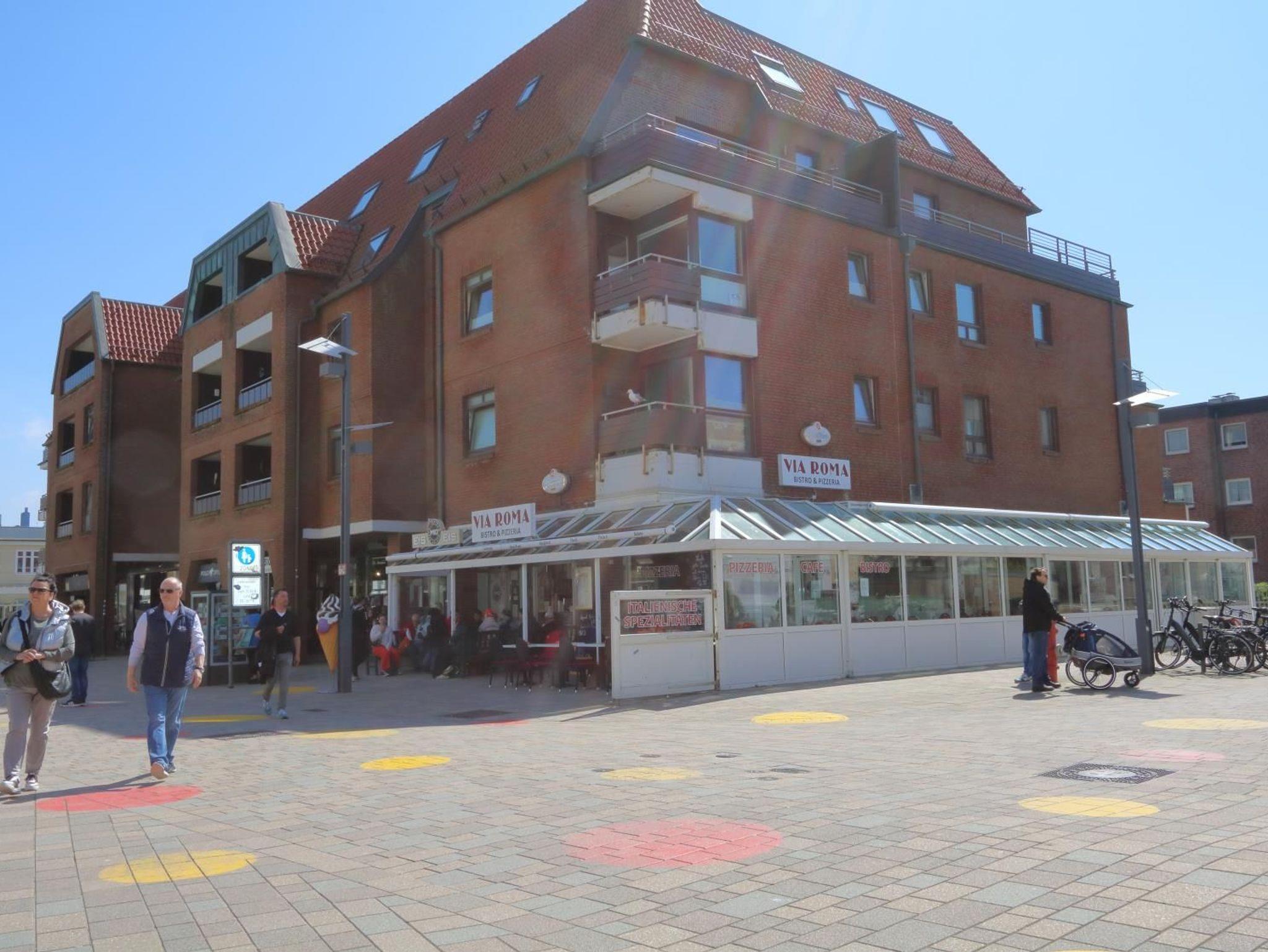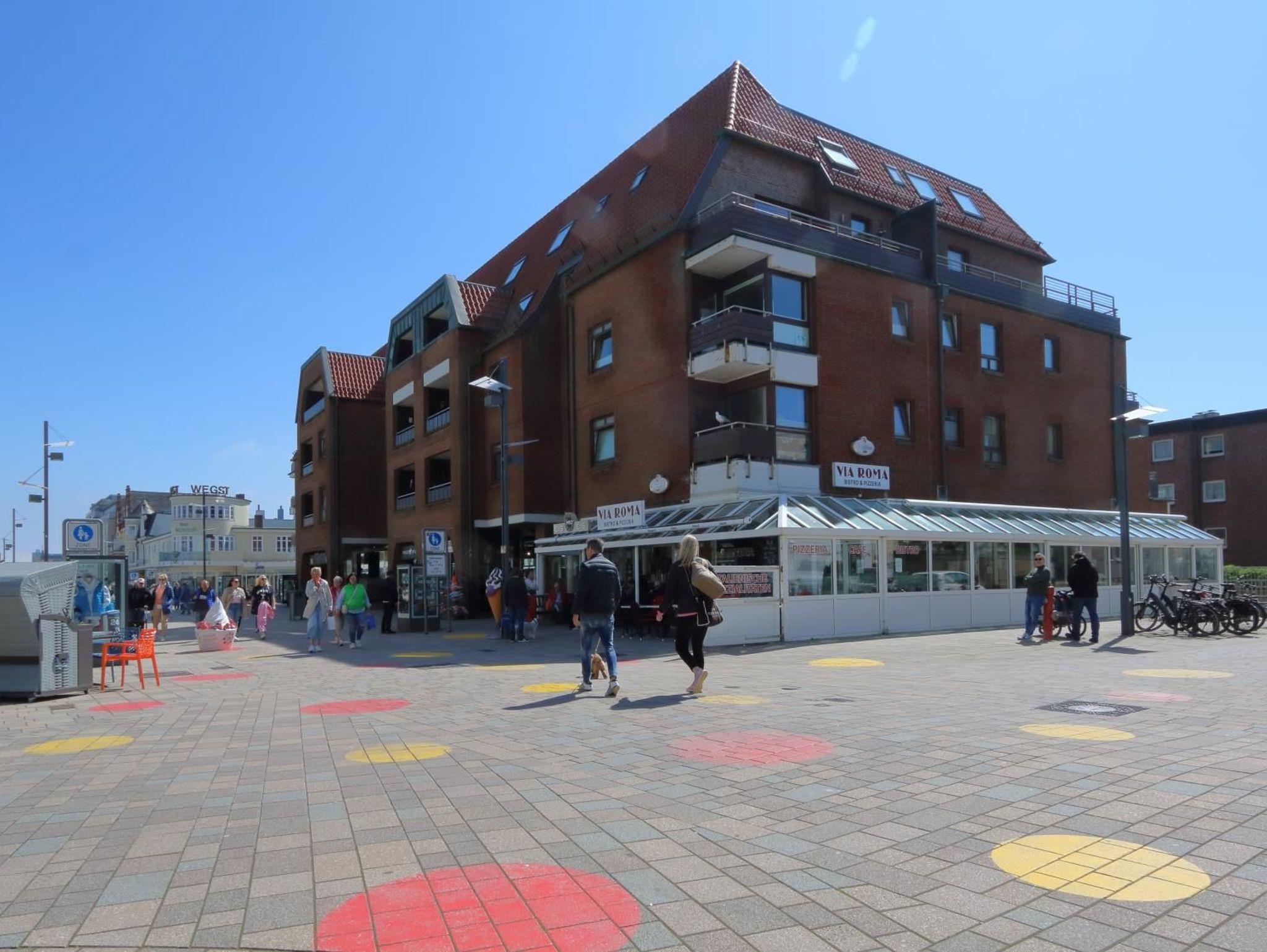 Das Appartement im 2. OG mit Westbalkon befindet sich an der Ecke des Hauses und ermöglicht so den Blick sowohl auf das Meer wie auf die belebte Fußgängerzone. Bei dem Haus handelt es sich um ein gepflegtes Appartementhaus mit Einzelhandelsgeschäften im Erdgeschoss am Kurzentrum, direkt am Hauptstrand, zentral in Westerland an der Fußgängerzone.