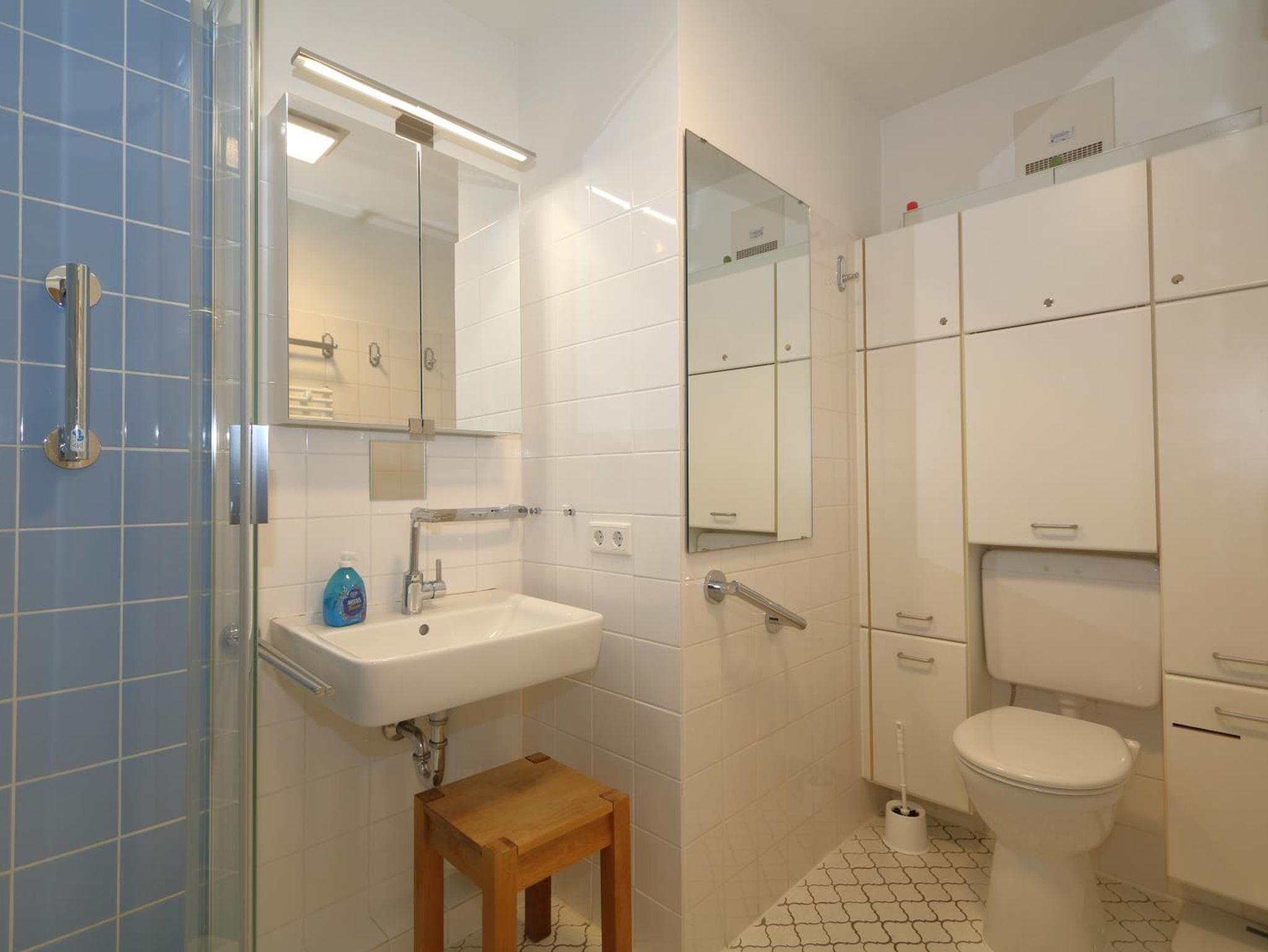 Das Appartement bietet einen WLan-Zugang und Tel/Fax-Anschluss.. Im Haus finden Sie außerdem Münzwaschmaschinen und -trockner sowie in der Tiefgarage einen Fahrradabstellplatz. Parkplatz inkl. am Haus.
