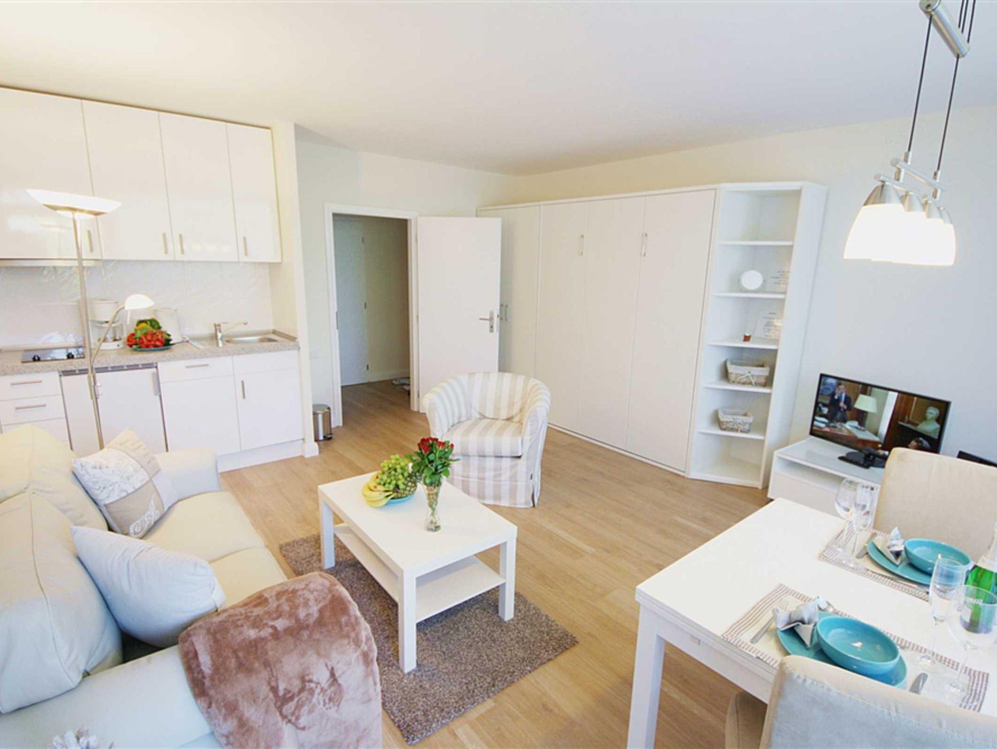 Es handelt sich um eine geschmackvoll neu renovierte 1- Zimmer Wohnung, die mitten im Sylter Zentrum aber durch die Lage in einer Sackgasse komplett ruhig liegt. Das Appartement befindet sich im Hochparterre und verfügt über ein bequemes Doppelschrankbett, einer modernen Pantryküche und Duschbad.
