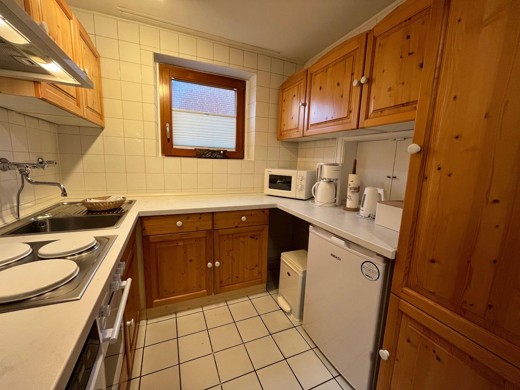 Die Wohnung eignet sich mit seinen knapp 50 qm für max. 3 Personen. Sie ist modern und gemütlich eingerichtet und bietet alles was man für einen angenehmen Urlaubsaufenthalt benötigt. Im Schlafzimmer befindet sich ein Doppelbett von 160 x 200 cm. Im Wohnraum ist ein ausziehbares Schlafsofa vorhanden. Eine separate Kochküche ist mit einem Geschirrspüler, einer Mikrowelle, Kaffeemaschine und Herd ausgestattet.