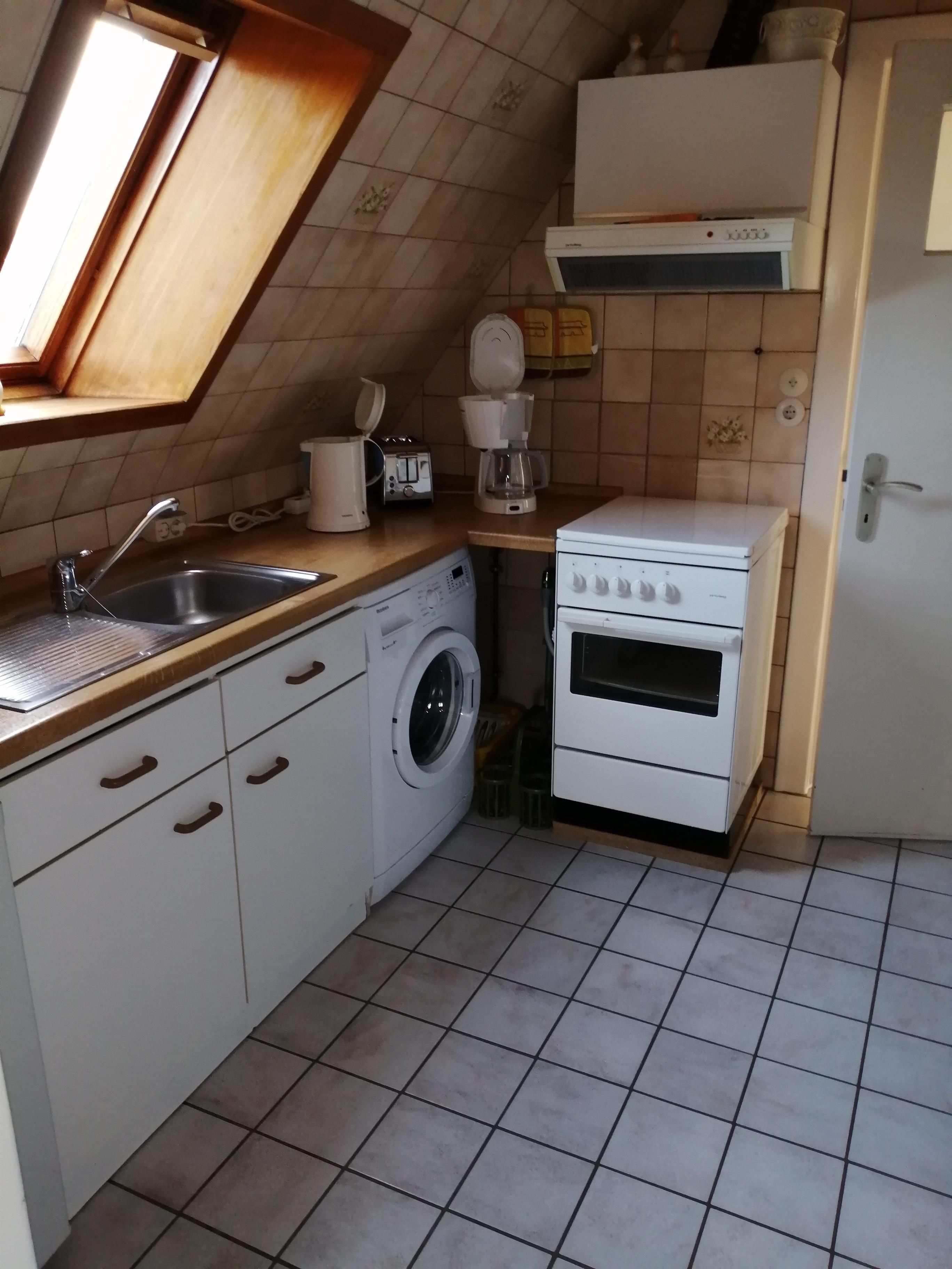 Die bestens ausgestattete Küche lässt keine Wünsche offen - neben Kühlschrank und Ofen stehen auch eine Mikrowelle und eine Kaffeemaschine bereit! Besonders für Familien interessant: Eine Waschmaschine ist ebenfalls vorhanden.