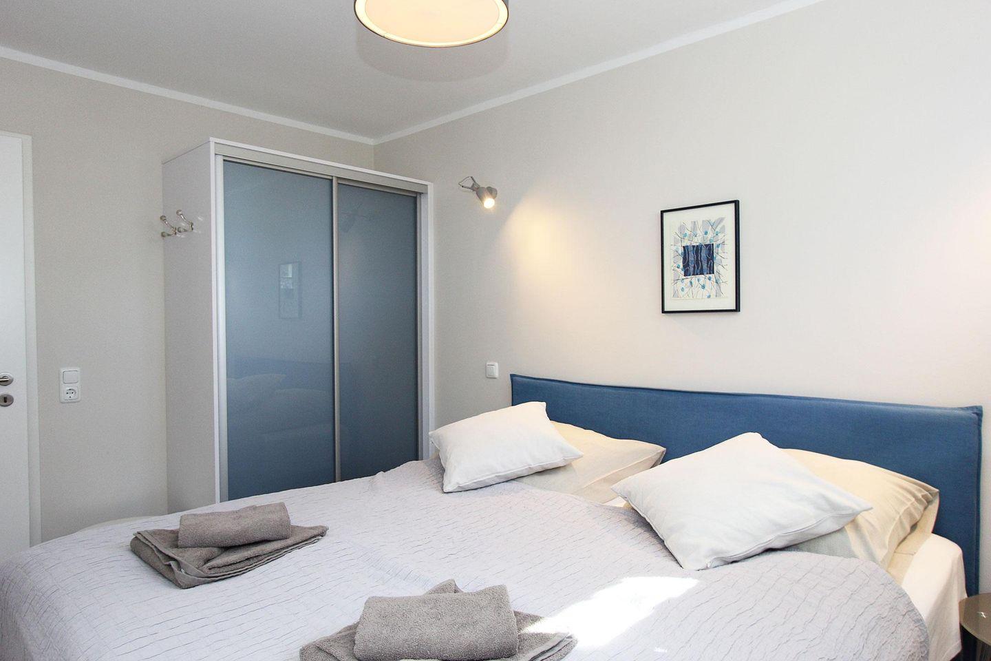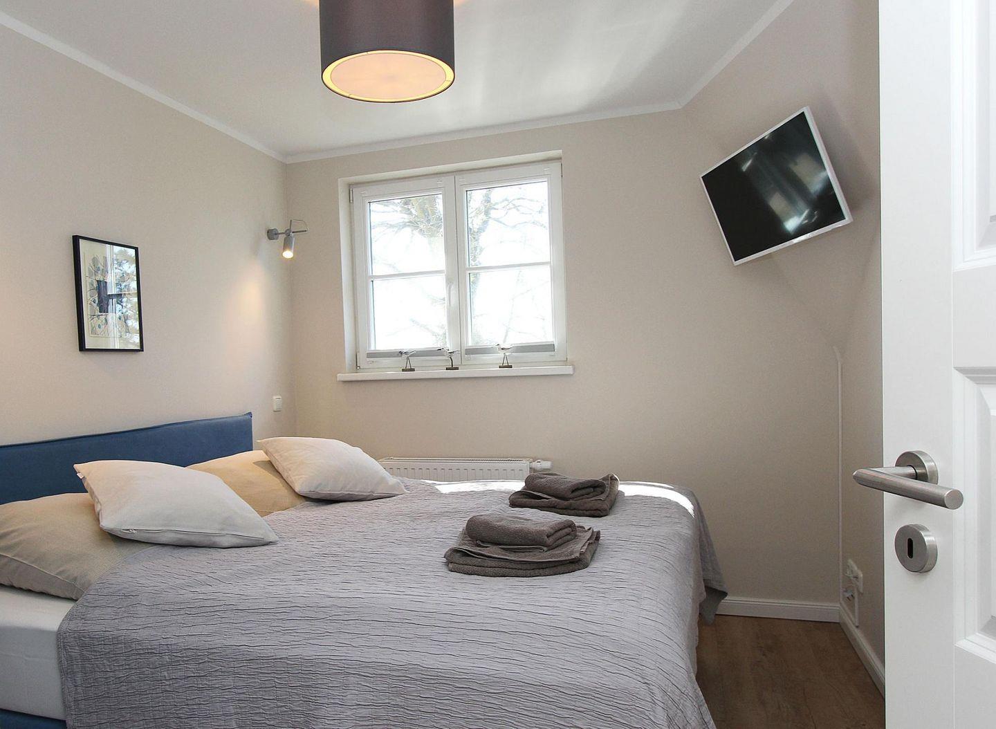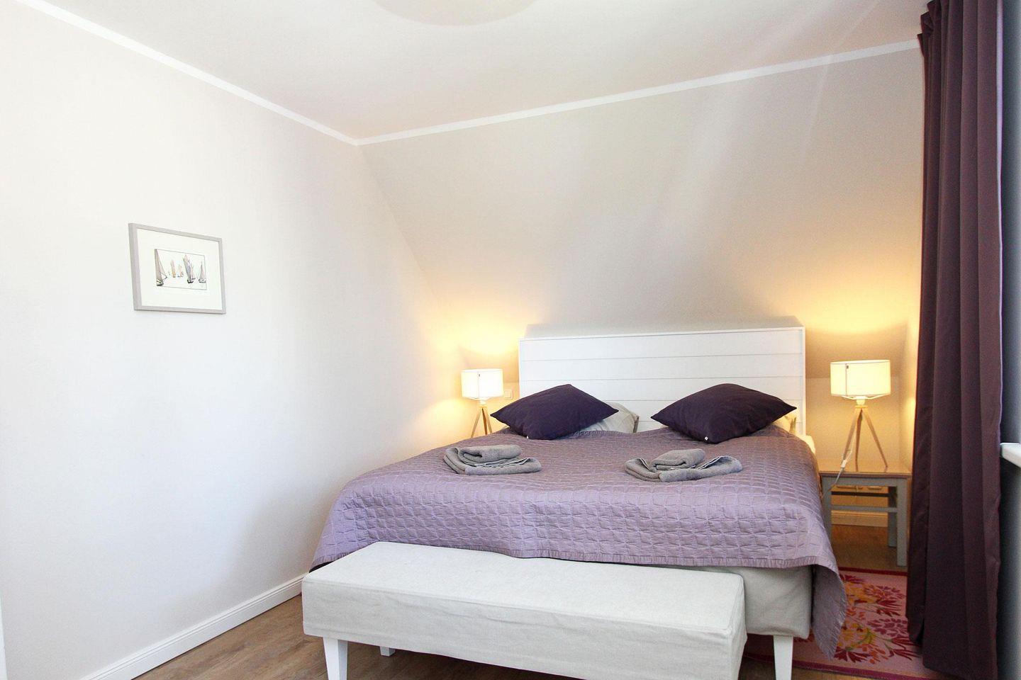 Über eine Eichenholztreppe erreicht man das Obergeschoss, welches aus den zwei Schlafzimmern mit hochwertigen Boxspringbetten und einem großen hellen Badezimmer mit einer begehbaren Dusche und angrenzender Sauna besteht.