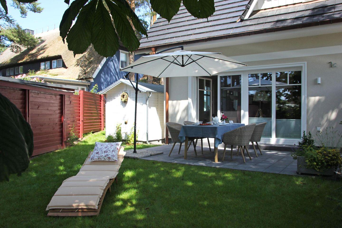 Am östlichen Ortsrand von Wieck befindet sich diese stilvoll eingerichtete Haushälfte. Der Radwanderweg, welcher die Nachbarorte Prerow und Born miteinander verbindet, liegt in unmittelbarer Nähe. Ihre Fahrräder können Sie im Gartenhäuschen des Grundstückes abstellen.