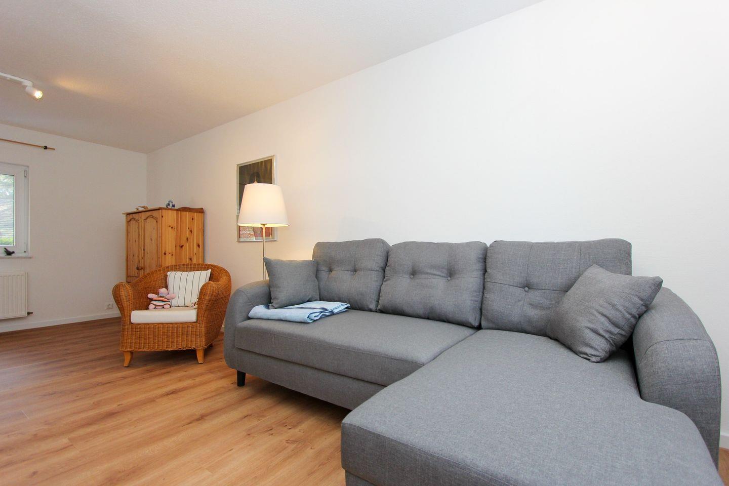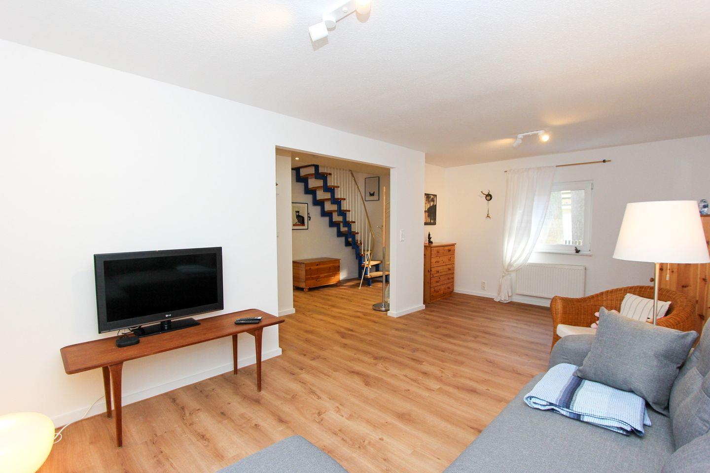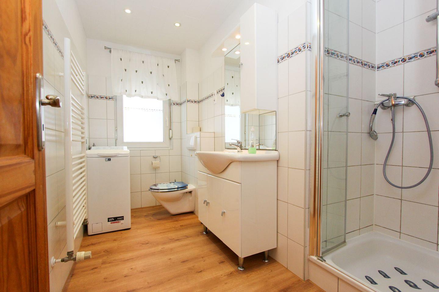 Im Erdgeschoss des Ferienhauses befindet sich eine große neu eingebaute Wohnküche mit Essbereich (Tisch mit 6 Stühlen) und TV sowie getrennt durch den Flurbereich ein geräumiger Aufenthaltsbereich mit Sofasitzgelegenheit. Das Erdgeschoss verfügt zudem über ein Badezimmer mit Dusche, WC und Waschmaschine.