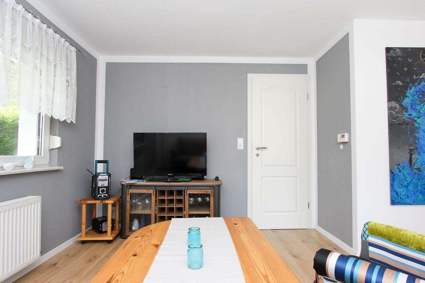 Im Erdgeschoss befindet sich der große Wohn- und Essbereich mit der hellen Küche. Von der großen, bequemen Couch aus kann man gemeinschaftliche Spiele- und Fernsehabendeverbringen.