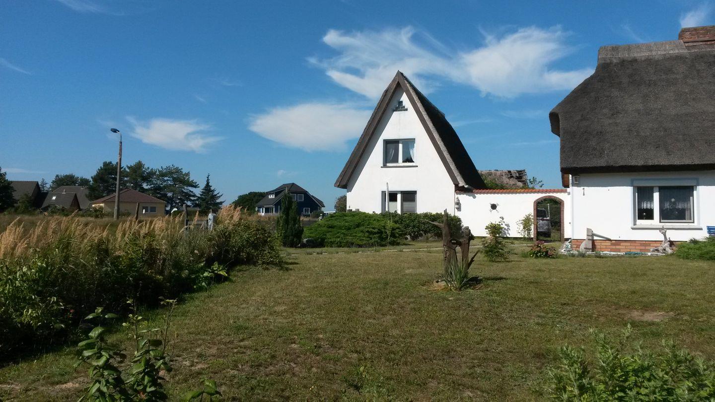 Unser Ferienhaus "Hagebutte" hat traditionell ein Rohrdach, eine begrünte Südterrasse (unverbauter Blick), einen separat abschließbaren Hauswirtschafts- und Fahrradraum.