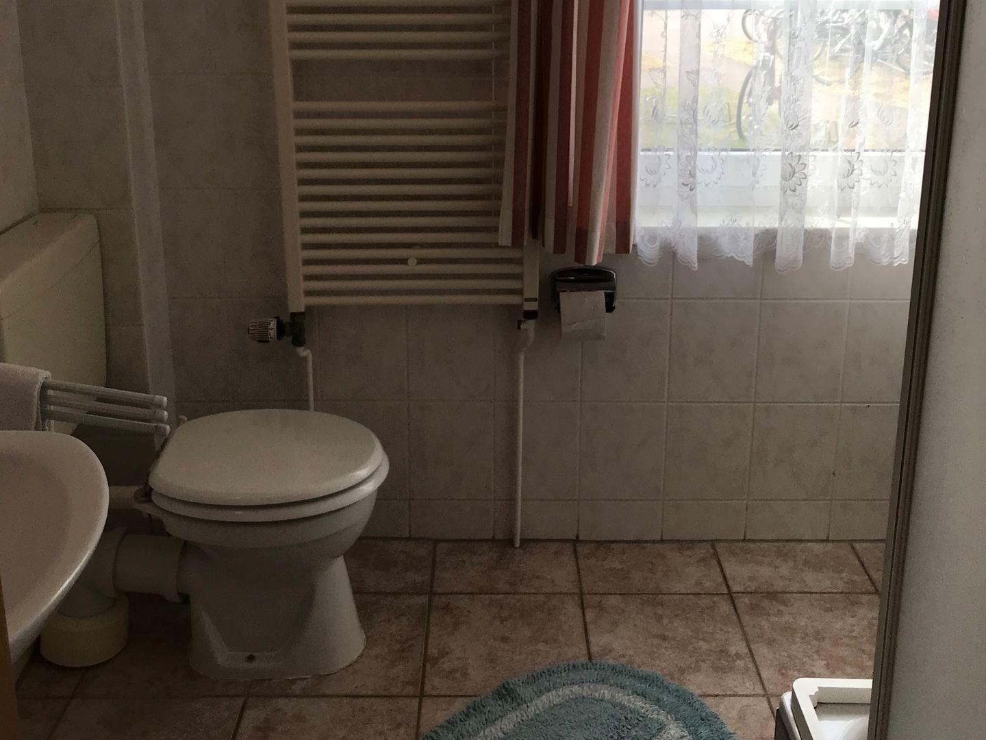 Das Bad verfügt über eine Dusche, WC,Warmwasser Heizung.