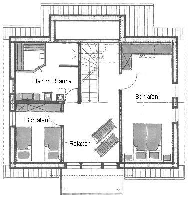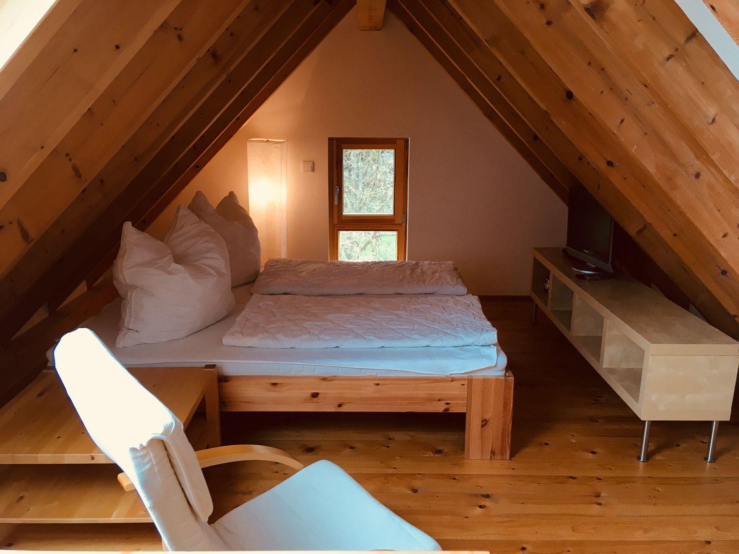 Im Spitzboden befinden sich zwei weitere Schlafmöglichkeiten (Doppelbett) mit Sat-TV.