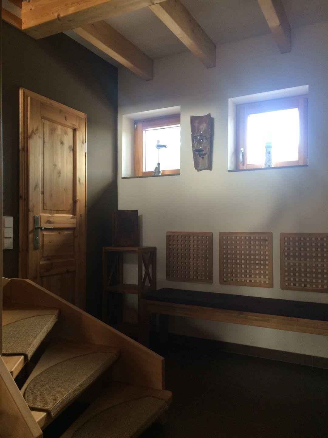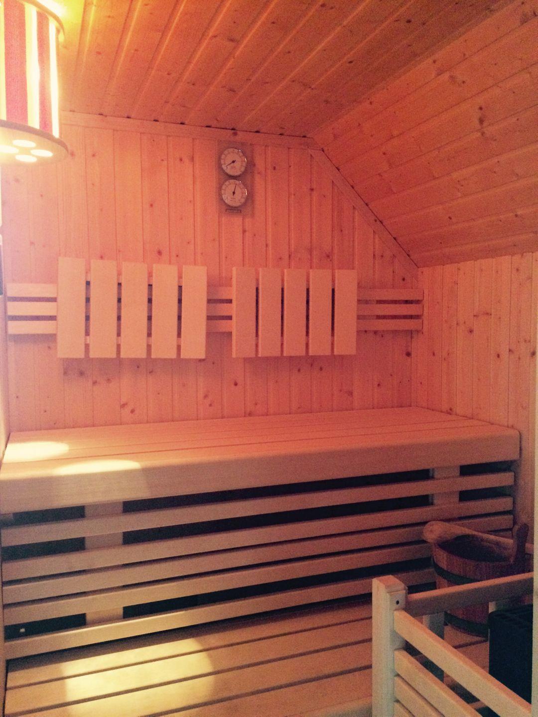 Im Obergeschoss erreichen Sie über eine Galerie mit Zugang zum Balkon auf der Südseite das großzügige Elternschlafzimmer, welches Platz bietet zur Aufstellung eines Kinderbettes, sowie ein weiteres Schlafzimmer für 2 Personen (Einzelbetten). Das Bad im OG bietet neben Dusche / WC / Waschtisch einen kleinen Saunabereich mit Kaltwasserschlauch. Relaxen können Sie anschließend in der Galerie.