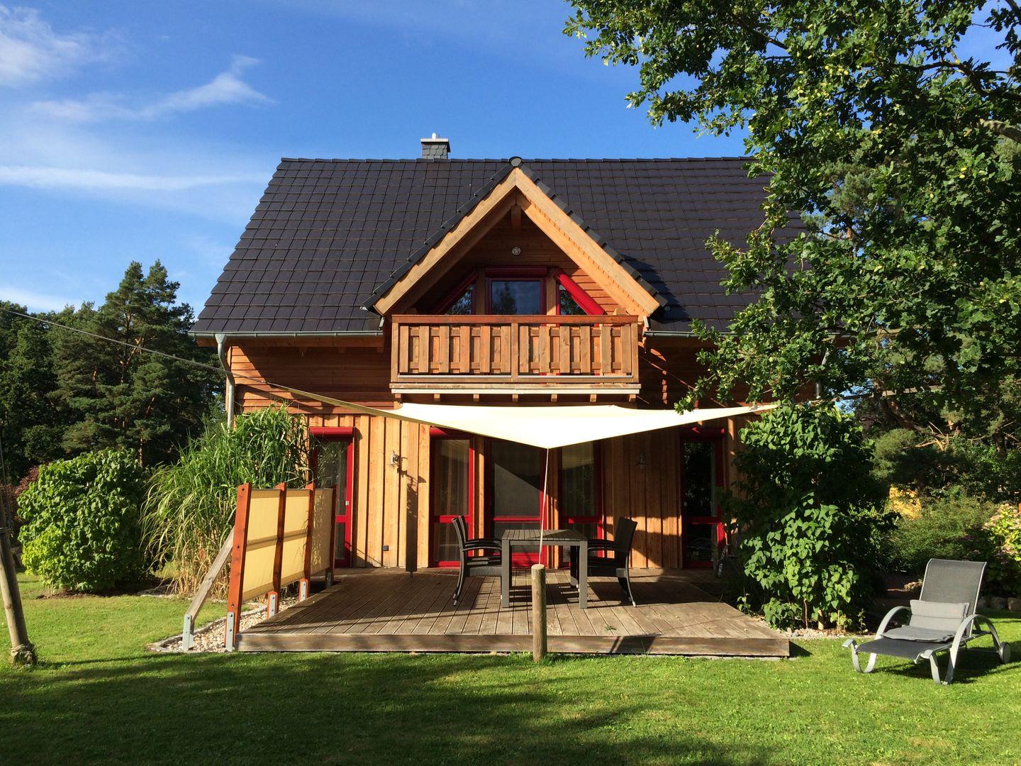 Das Niedrigenergiehaus, in Holzbauweise, bietet ein sehr angenehmes Wohnklima und ist in seiner Einrichtung und Auswahl seines Inventars für Allergiker geeignet. Auf 3 Etagen bietet es auf 130 m² Wohnfläche Platz für 2-6 Personen. Eine große Holzterrasse auf der Südseite und ein liebevoll angelegter Garten lädt zum Verweilen ein. Eine Sauna und ein Kaminofen tragen auch an kälteren Tagen zum Wohlbefinden bei. Auf dem Grundstück befinden sich 2 Parkplätze. Im Nebengelass steht Ihnen weiterhin Platz zum Unterstellen Ihrer persönlichen Dinge (z.B. Fahrräder) zur Verfügung.
